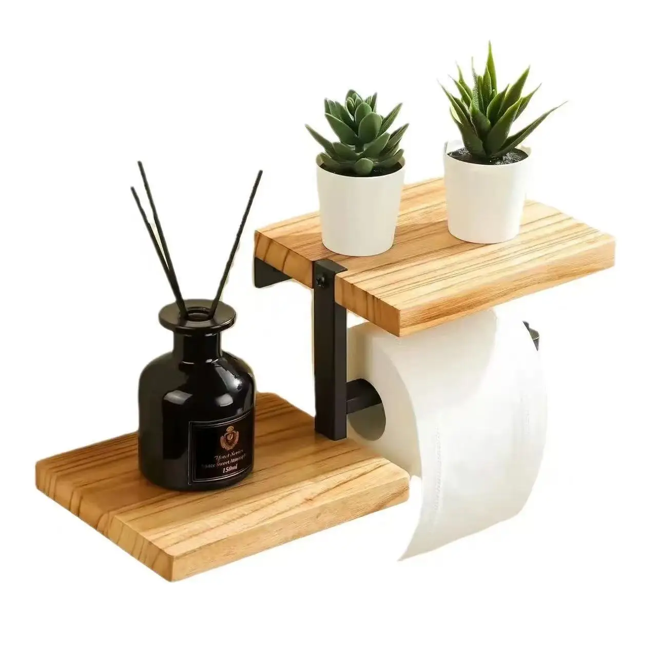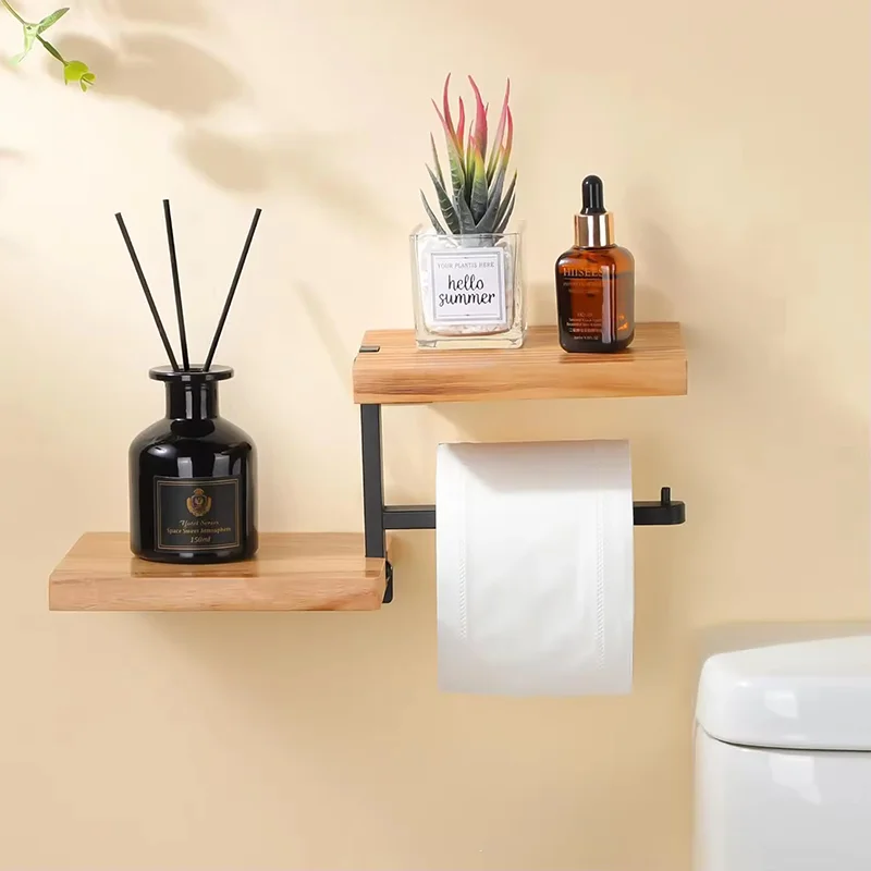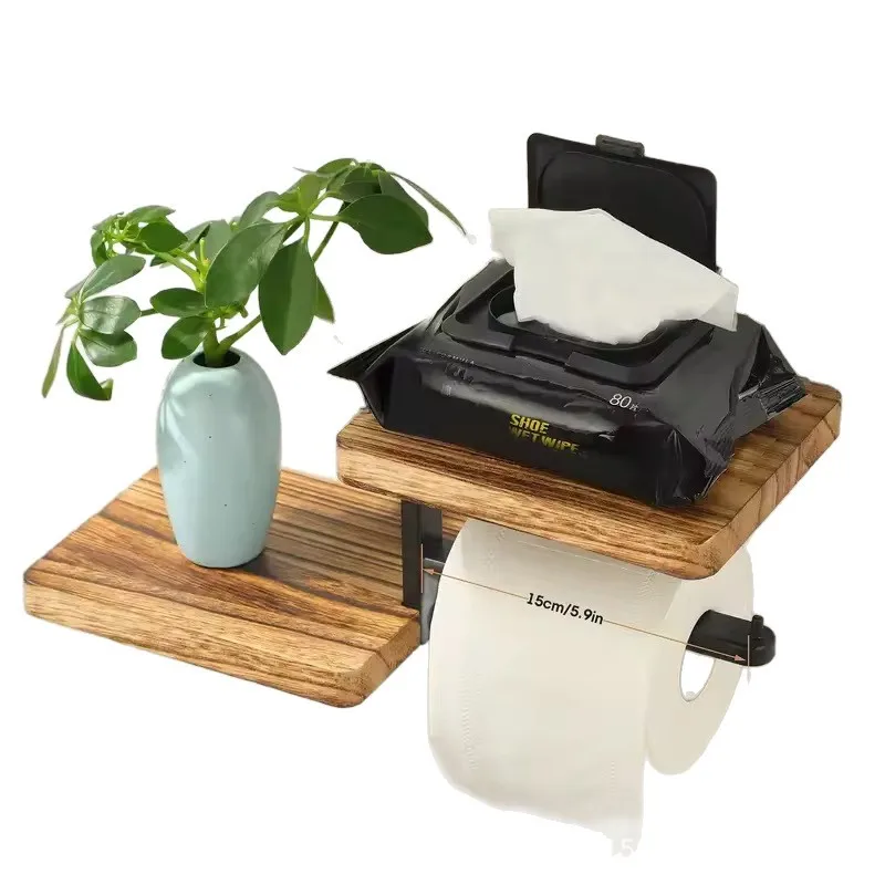 ที่แขวนกระดาษทิชชูติดผนังไม้ 1 ชิ้น สำหรับห้องน้ำ ที่ใส่กระดาษชำระแบบแขวน สีดำ อุปกรณ์เสริมสำหรับห้องครัว