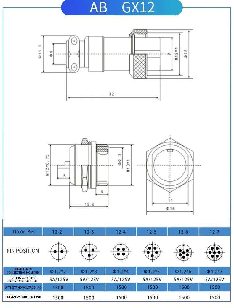 เส้นผ่านศูนย์กลางรูยึด: 20 มม 2/3/4/5/6/7/8/9/10/12/14/15 พินส |