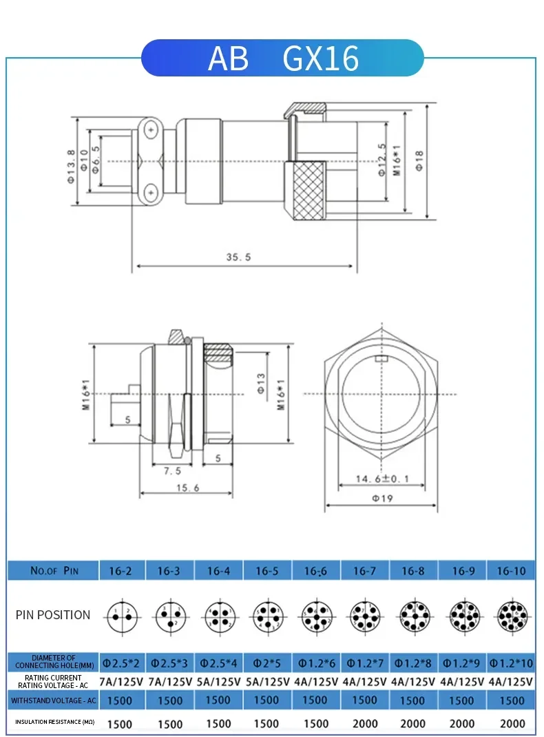 เส้นผ่านศูนย์กลางรูยึด: 16 มม 2/3/4/5/6/7/8/9/10หมุด |