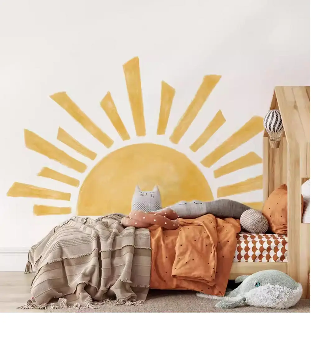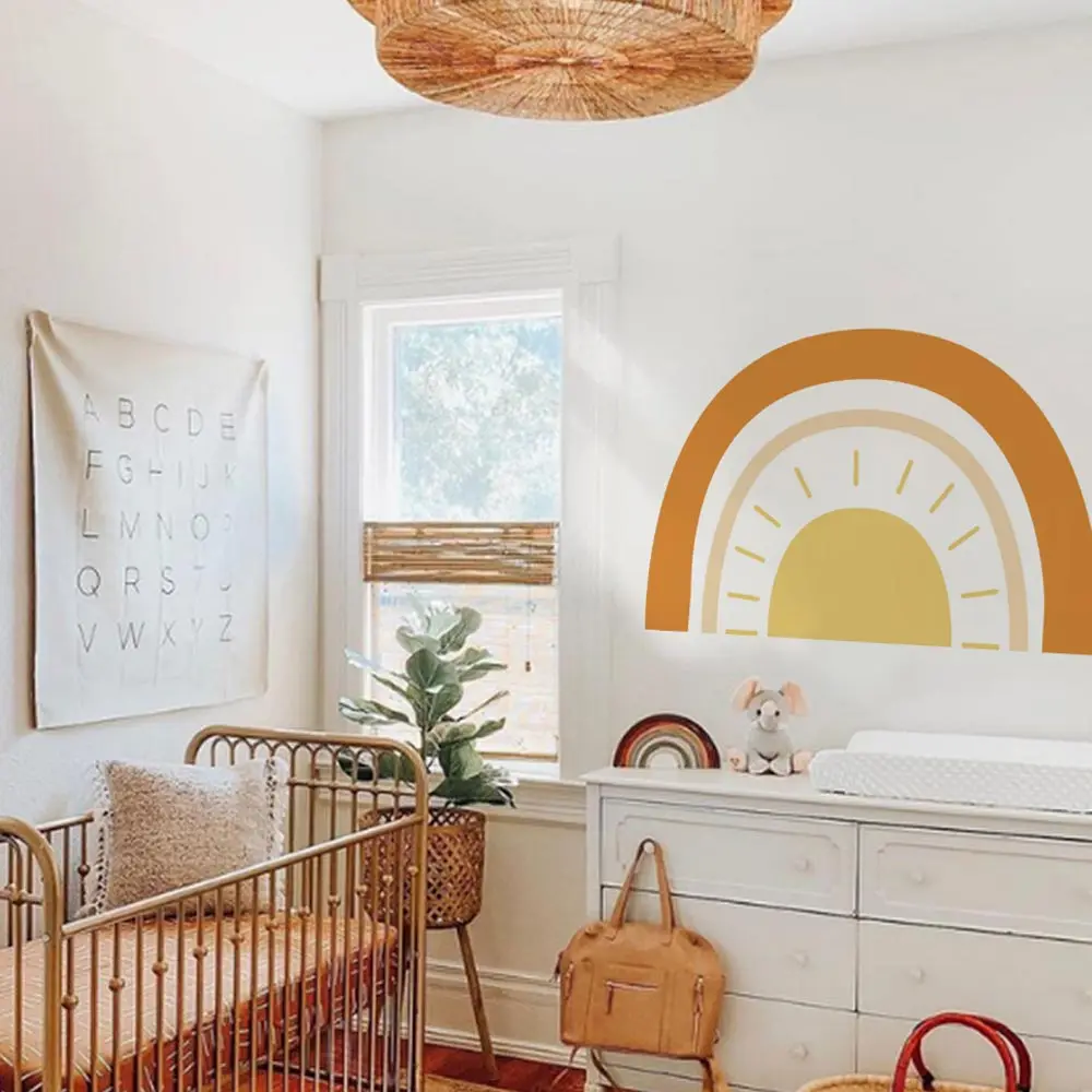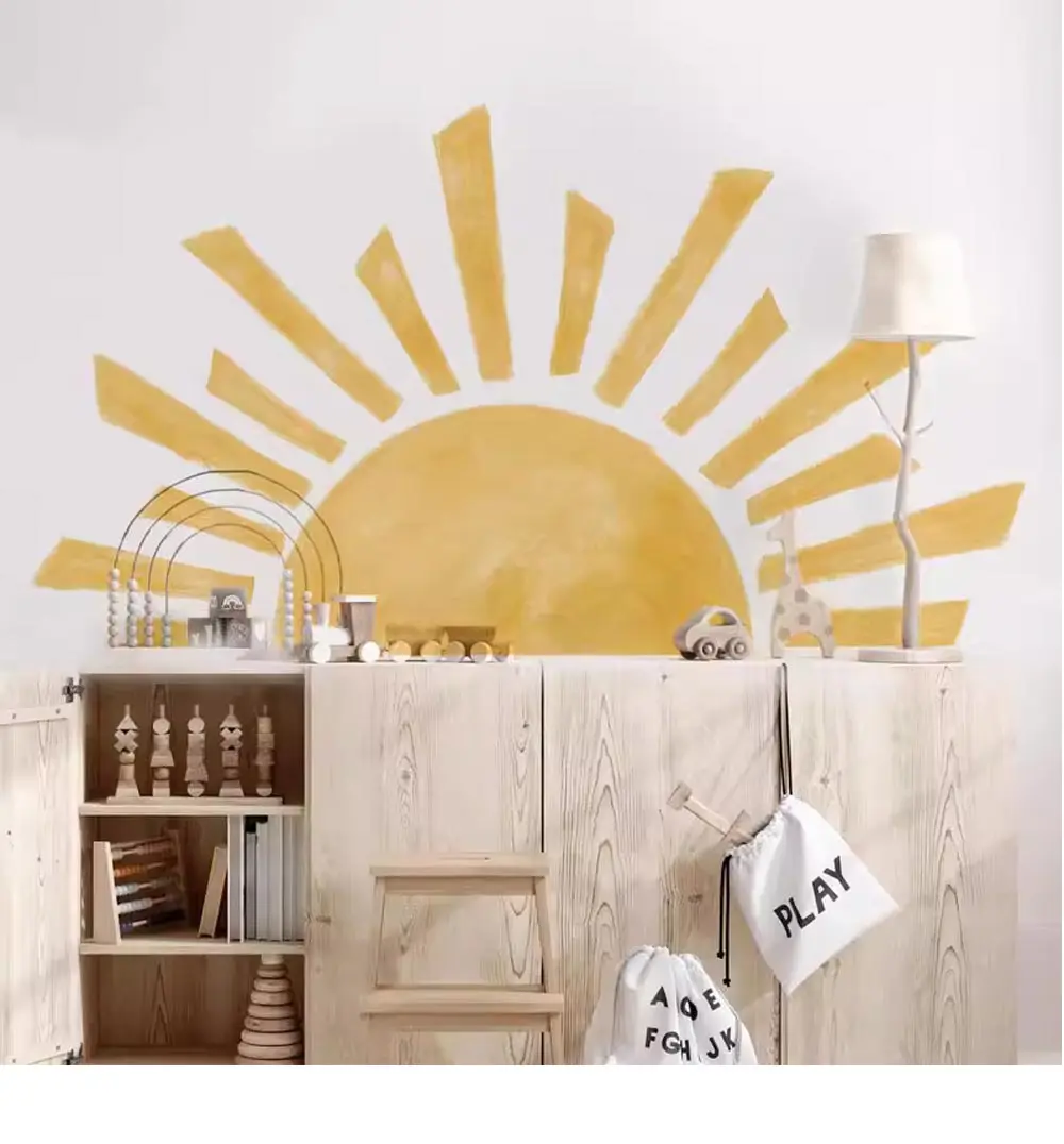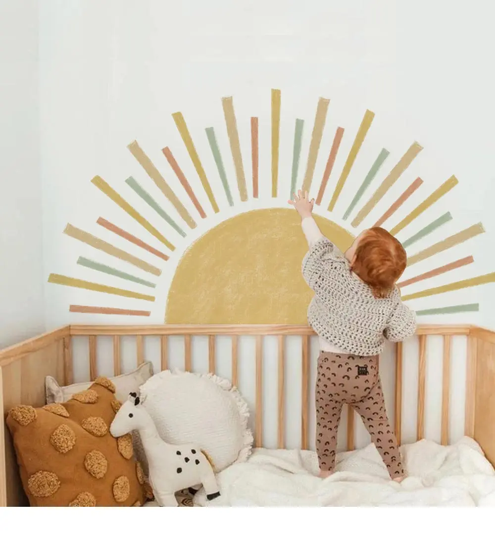 Half Sun วอลล์เปเปอร์รูปลอก Sunshine ไวนิลสติ๊กเกอร์ติดผนัง Boho เนอสเซอรี่ Baby Room สติ๊กเกอร์ติดผนัง Self-Adhesive ห้องนอนตกแต่งบ้าน
