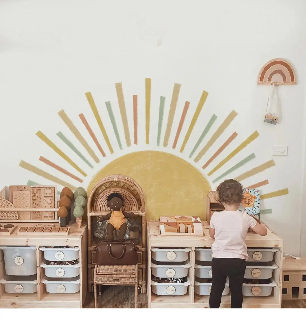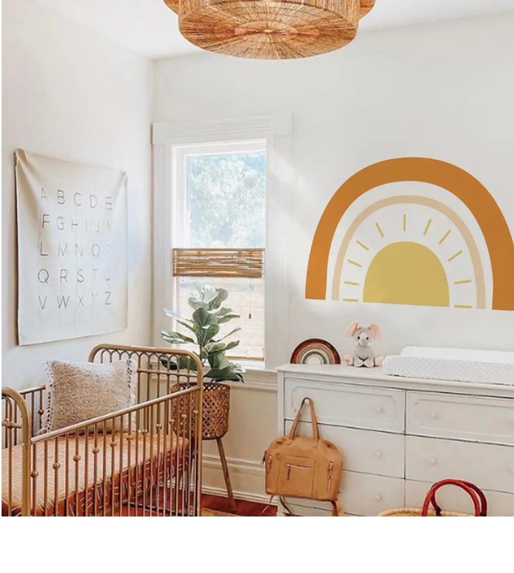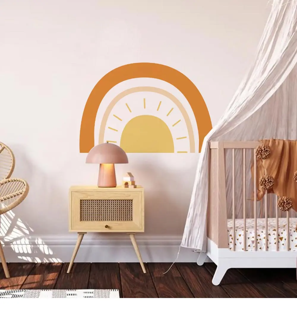 Half Sun วอลล์เปเปอร์รูปลอก Sunshine ไวนิลสติ๊กเกอร์ติดผนัง Boho เนอสเซอรี่ Baby Room สติ๊กเกอร์ติดผนัง Self-Adhesive ห้องนอนตกแต่งบ้าน