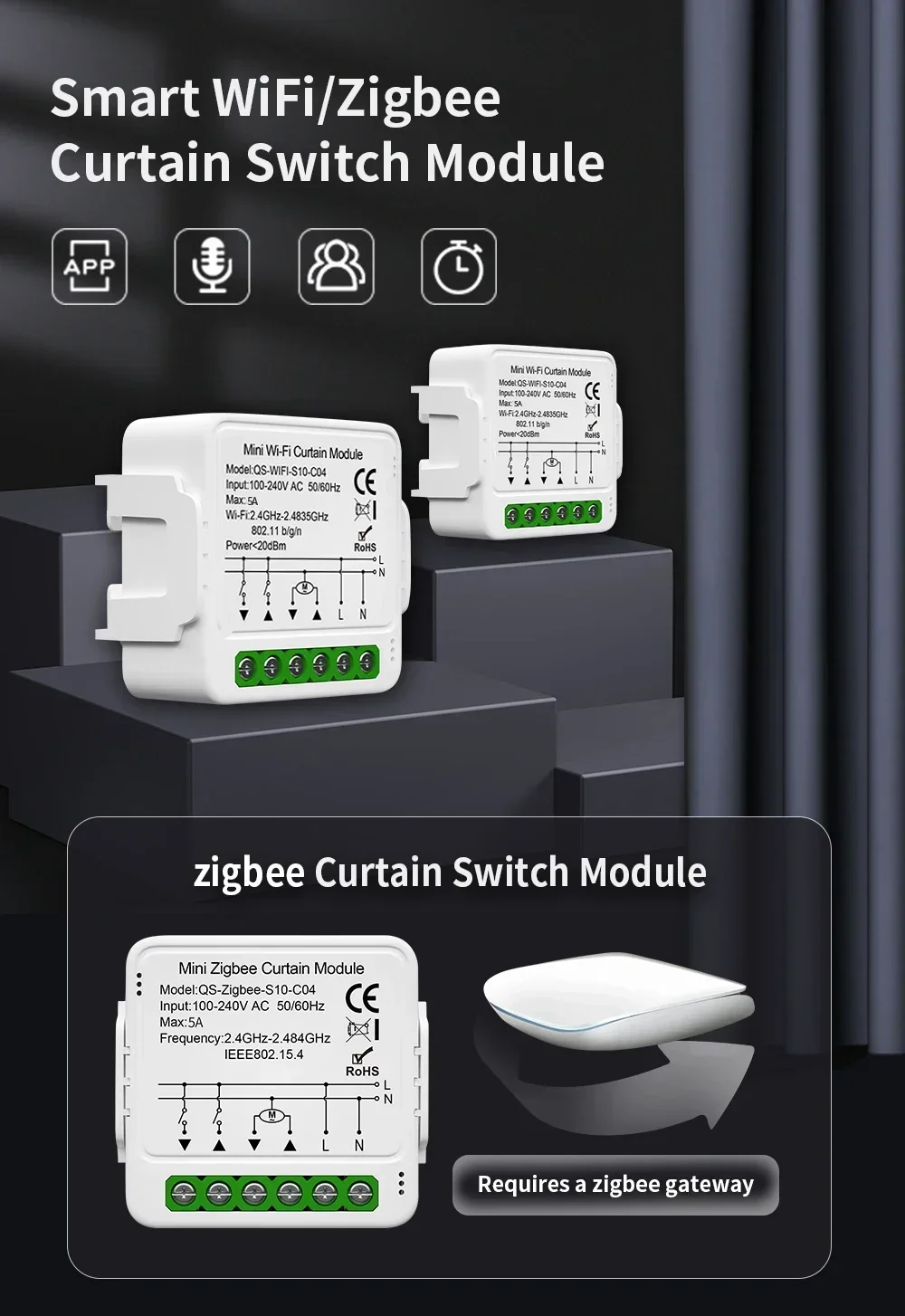 TNCE TUYA WIFI/Zigbee สวิทช์ผ้าม่าน Dimmer สมาร์ท DIY MINI โมดูล 2-way Control Breaker, เสียง Alexa Google Home