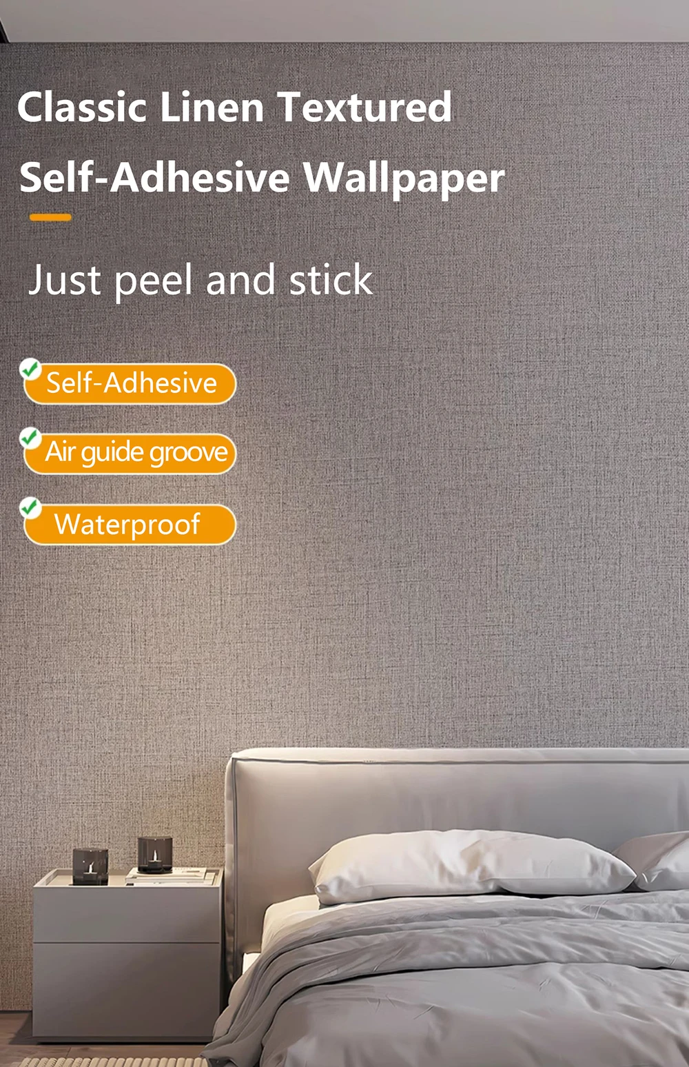 ~Self Adhesive – วอลล์เปเปอร์พื้นผิวผ้าลินินแบบมีกาวในตัว โดยไม่ต้องใช้กาวเพิ่มเติม เพียงแค่ลอกและติด ติดตั้งง่าย