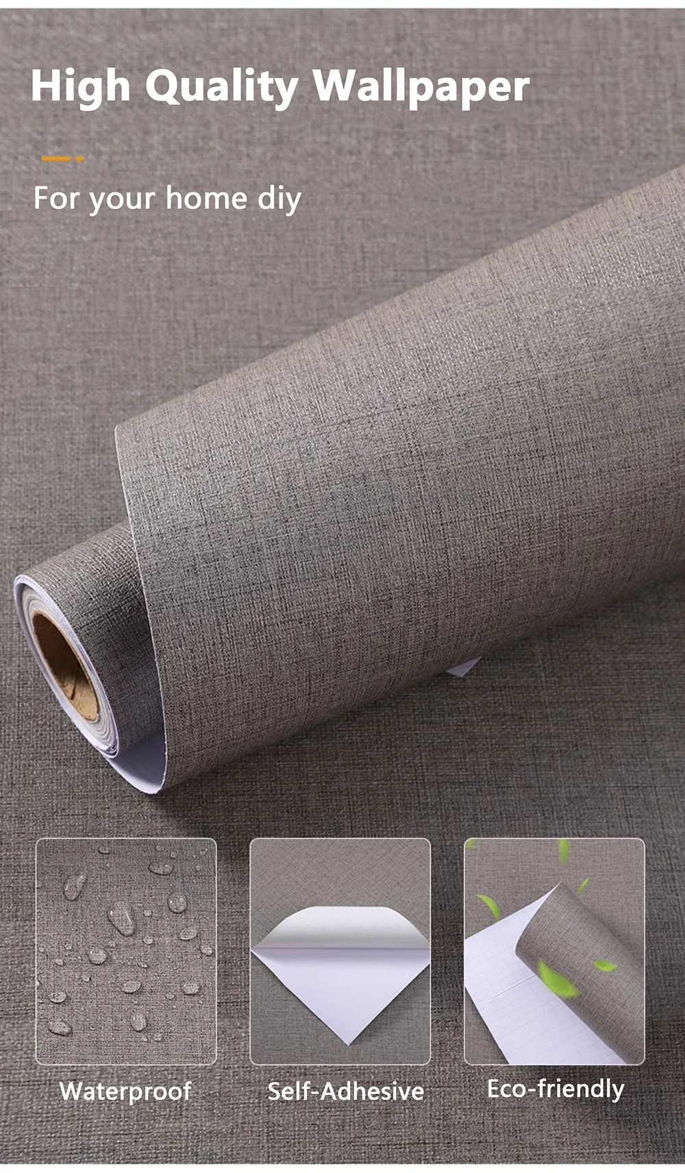 วอลเปเปอร์ลายหญ้าเทียมแบบติดผนังลายลินินสำหรับตกแต่งผนังห้องนอนห้องนั่งเล่นตู้ครัวและเคาน์เตอร์