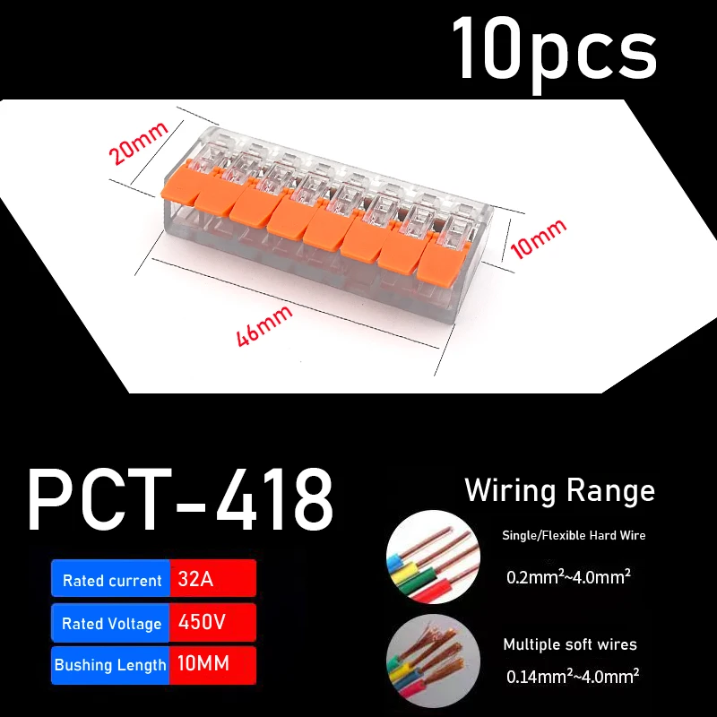 10-75 ชิ้น ขั้วต่อสายไฟแบบเสียบเร็ว สีส้ม ใช้ได้กับทุกประเภท อุปกรณ์เชื่อมต่อไฟฟ้า ขั้วต่อสายไฟ 250V/32A