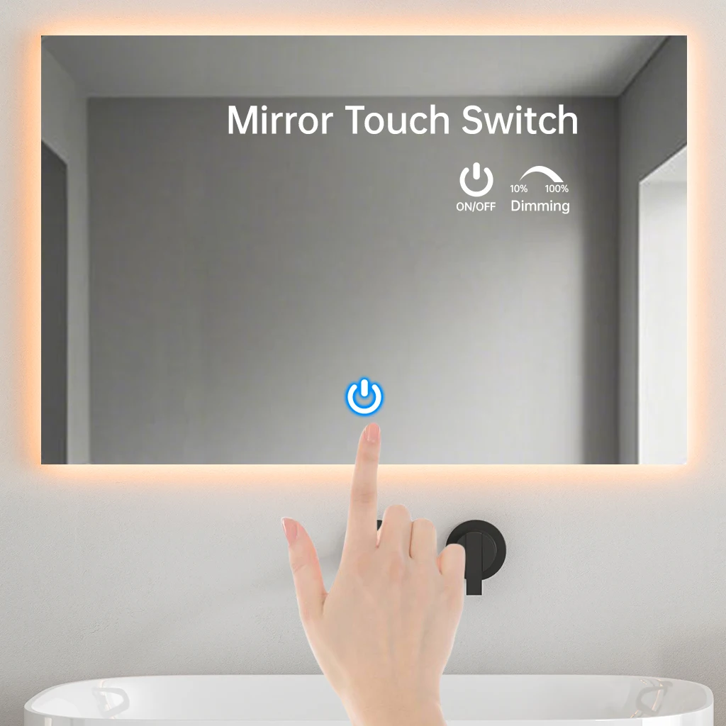 สวิตช์เซ็นเซอร์สัมผัสแบบกระจก AC110-220V เป็น DC12V 1A พร้อมระบบปรับความสว่าง CCT สำหรับติดตั้งไฟพื้นหลังกระจกแต่งหน้าในห้องน้ำ
