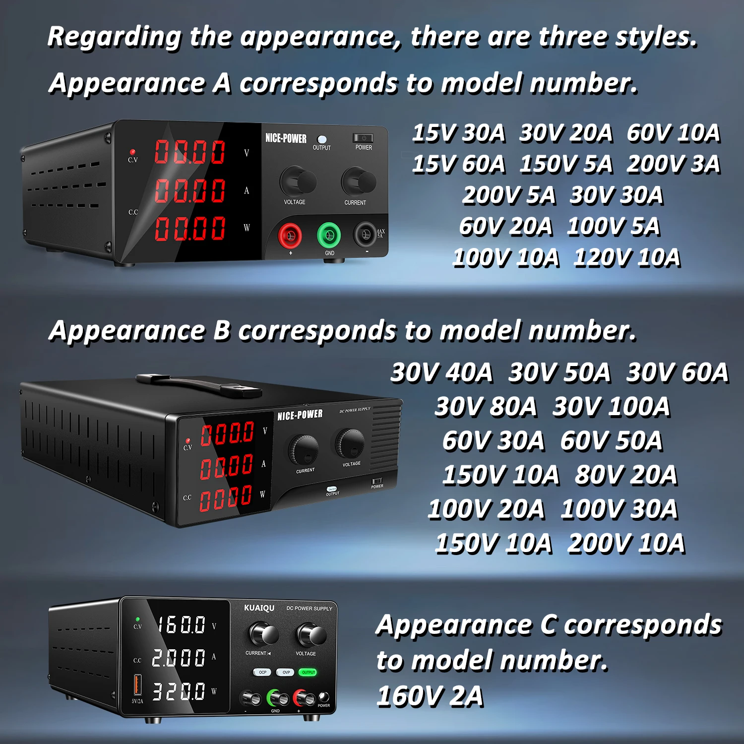 110V10A 120V10A 150V5A 200V3A 200V5A 30V40A 30V50A