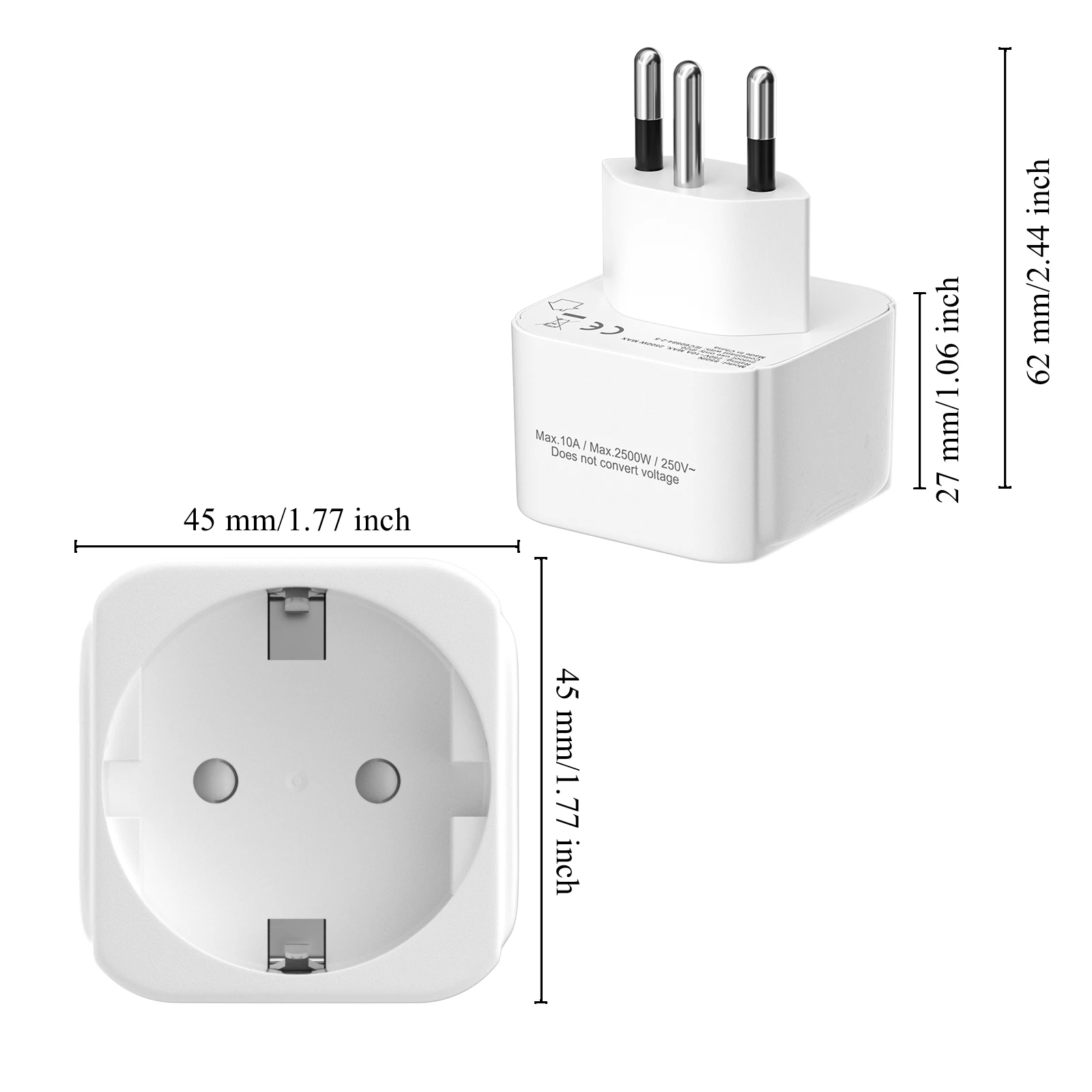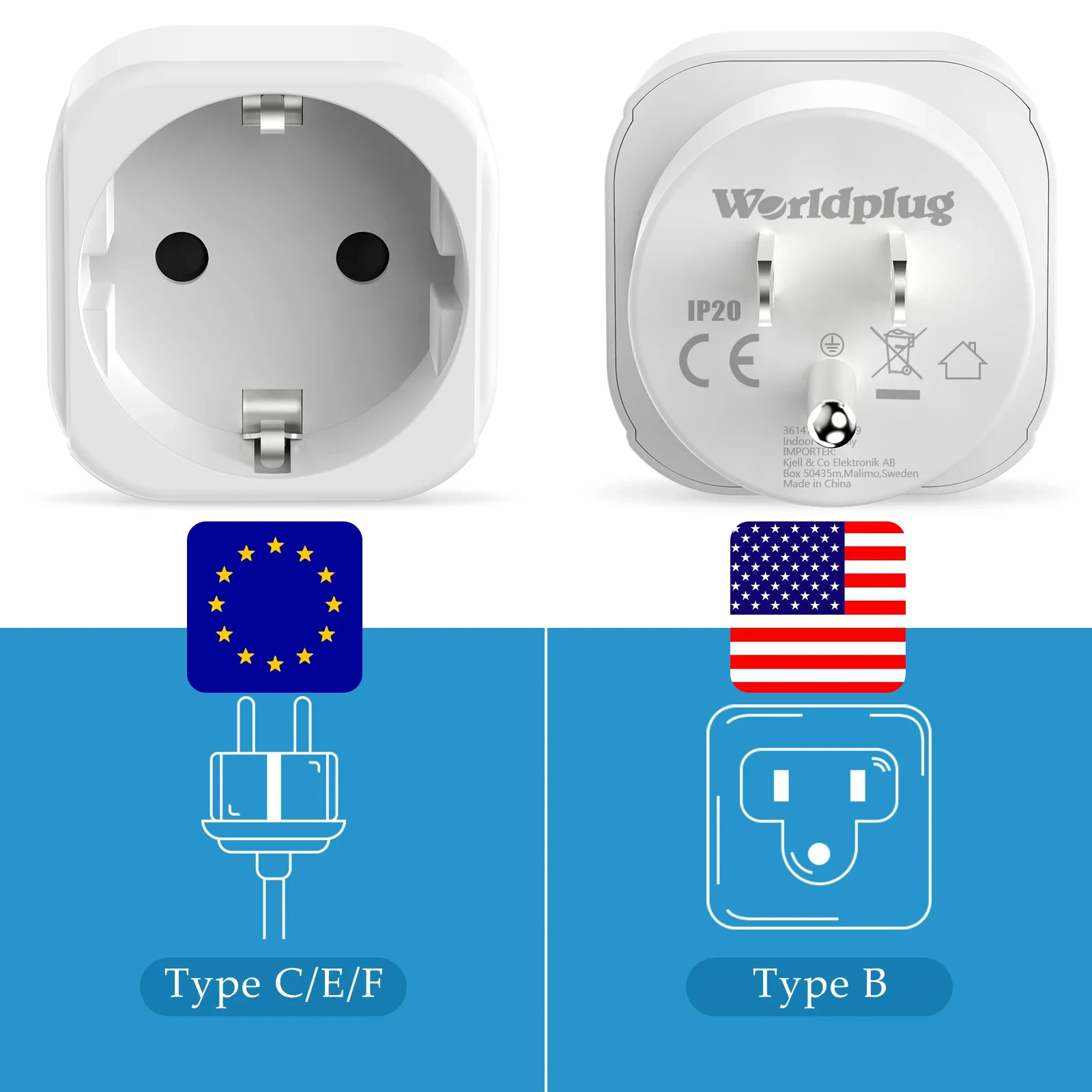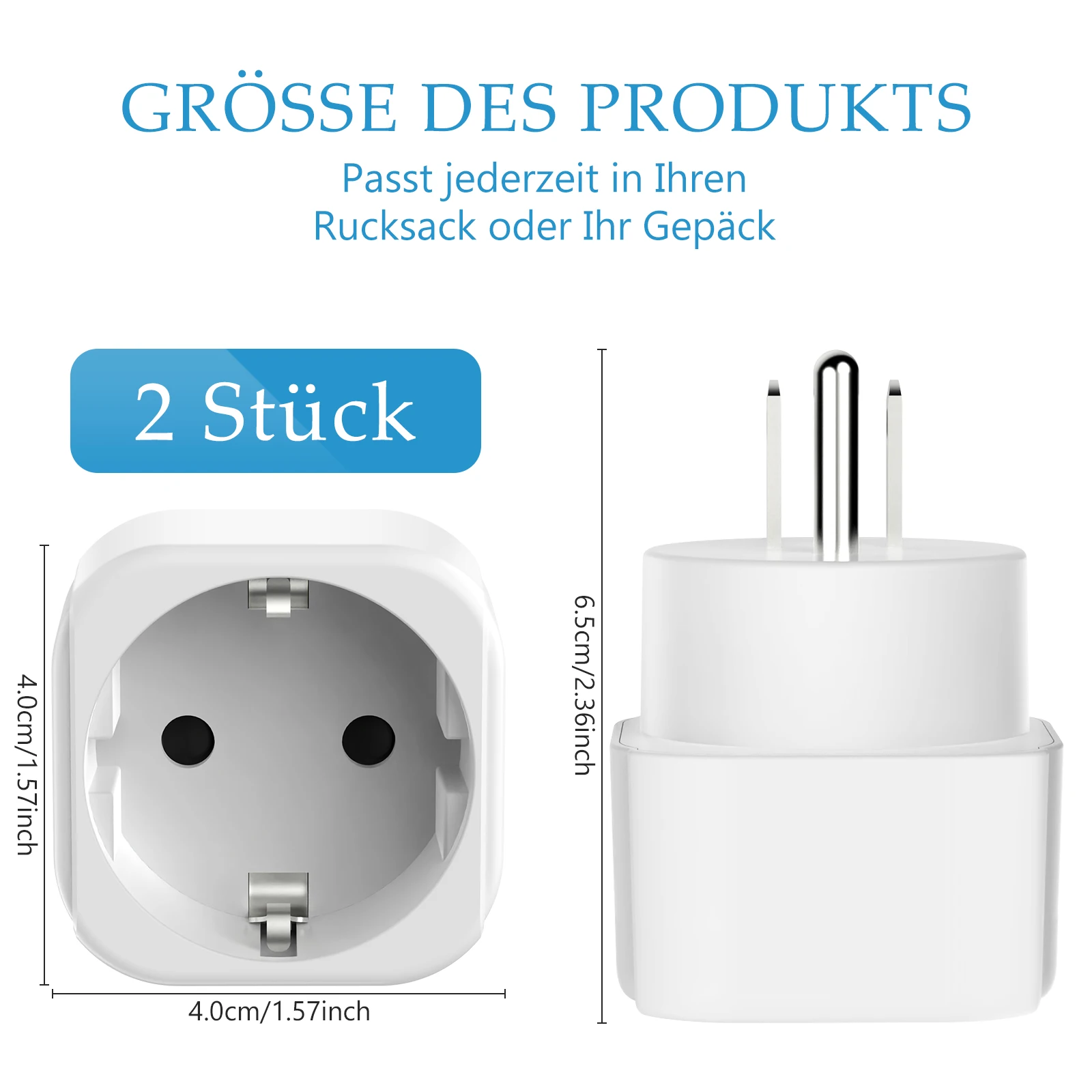 อะแดปเตอร์เดินทางสากล 2 ชิ้น EU ไปยัง USA UK ออสเตรเลียสวิตเซอร์แลนด์อินเดียแอฟริกาใต้อิตาลีปลั๊กแปลงผนังซ็อกเก็ต
