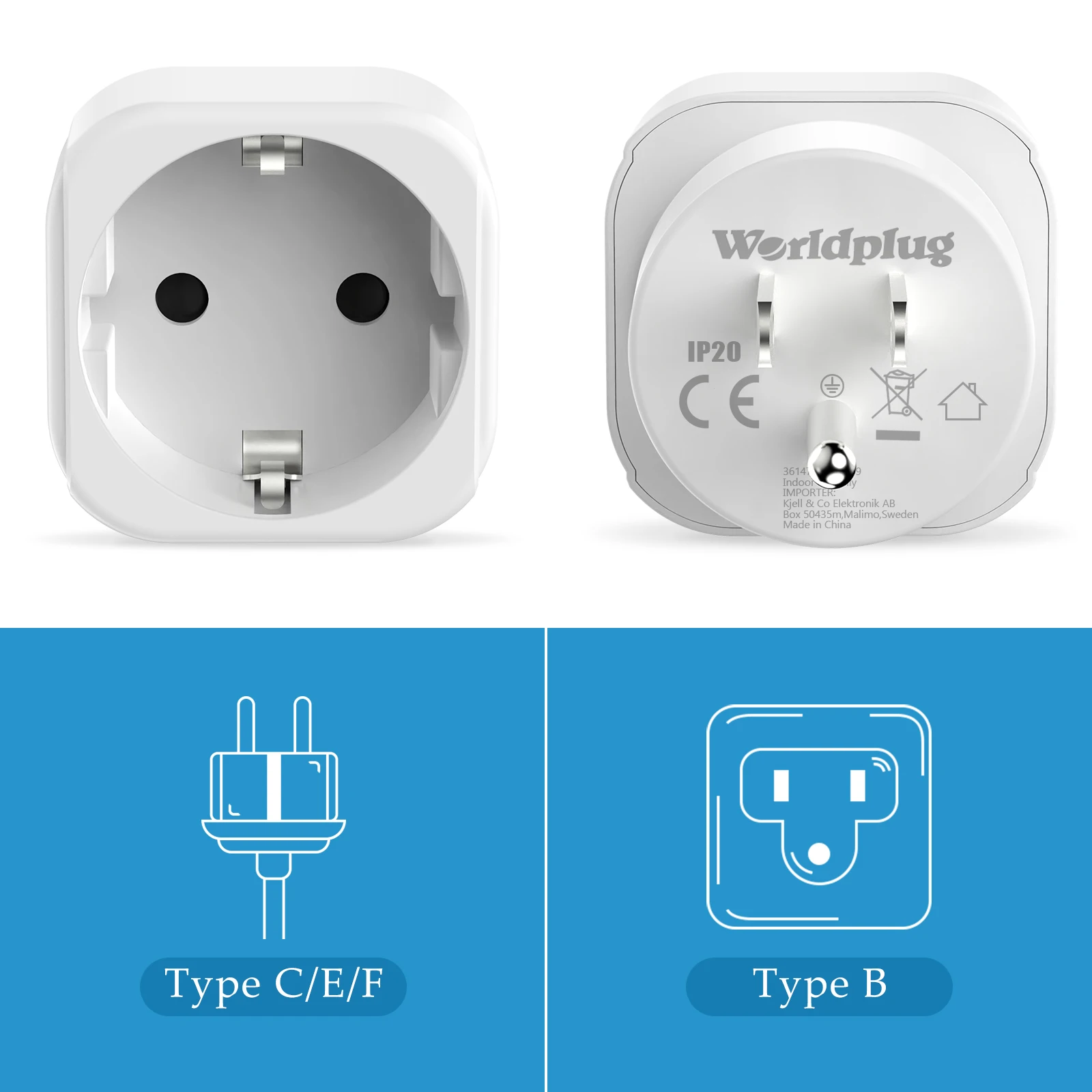 อะแดปเตอร์เดินทางสากล 2 ชิ้น EU ไปยัง USA UK ออสเตรเลียสวิตเซอร์แลนด์อินเดียแอฟริกาใต้อิตาลีปลั๊กแปลงผนังซ็อกเก็ต