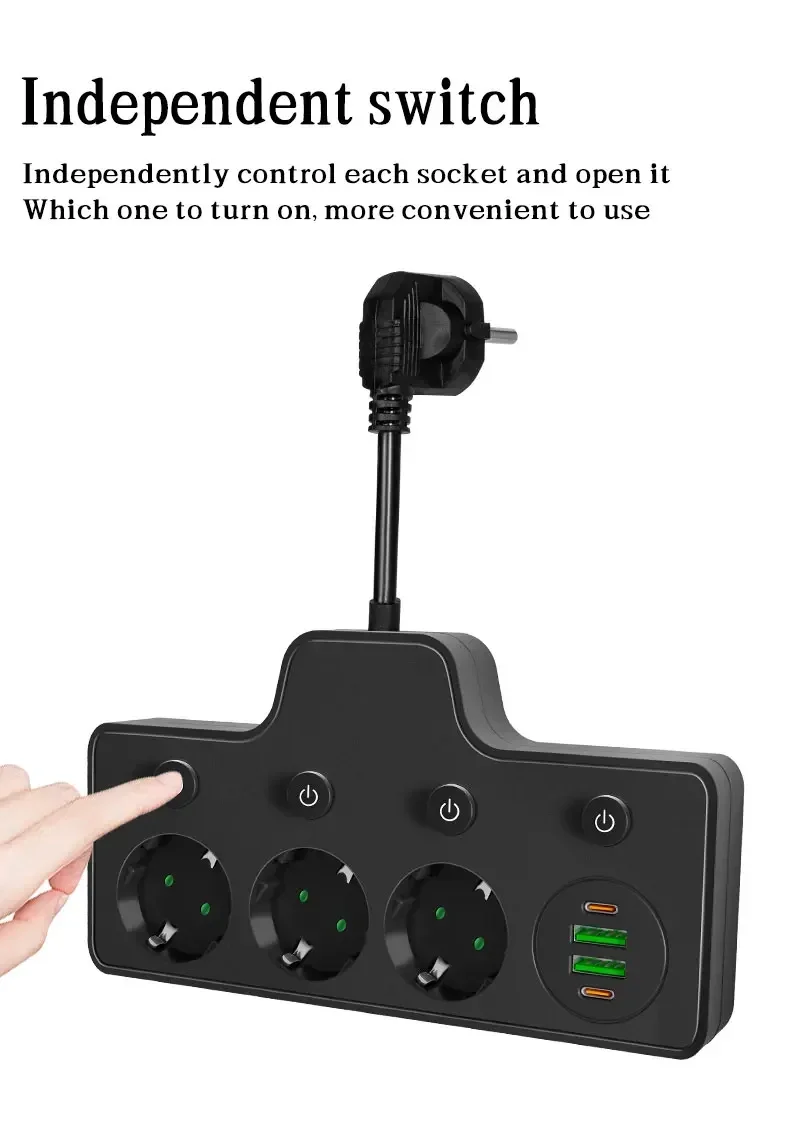 ปลั๊กพ่วงนี้มาพร้อมกับปลั๊กไฟ 2-3-4 และพอร์ต USB 2.1A ให้การเชื่อมต่อที่หลากหลายสําหรับใช้ในบ้านและสํานักงาน