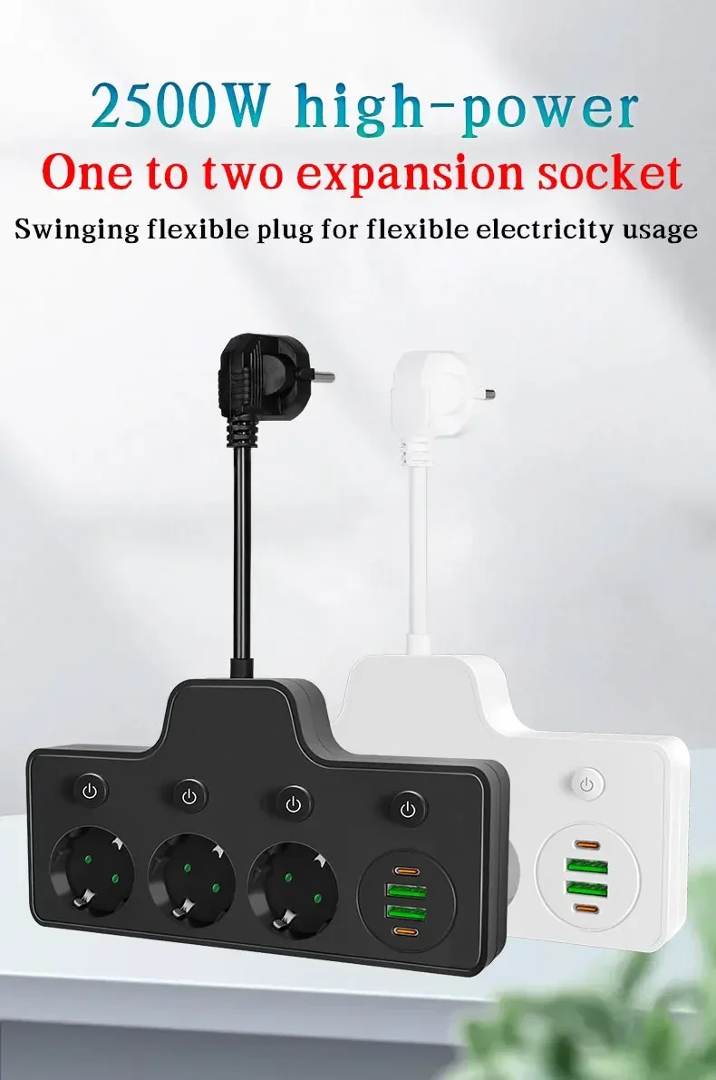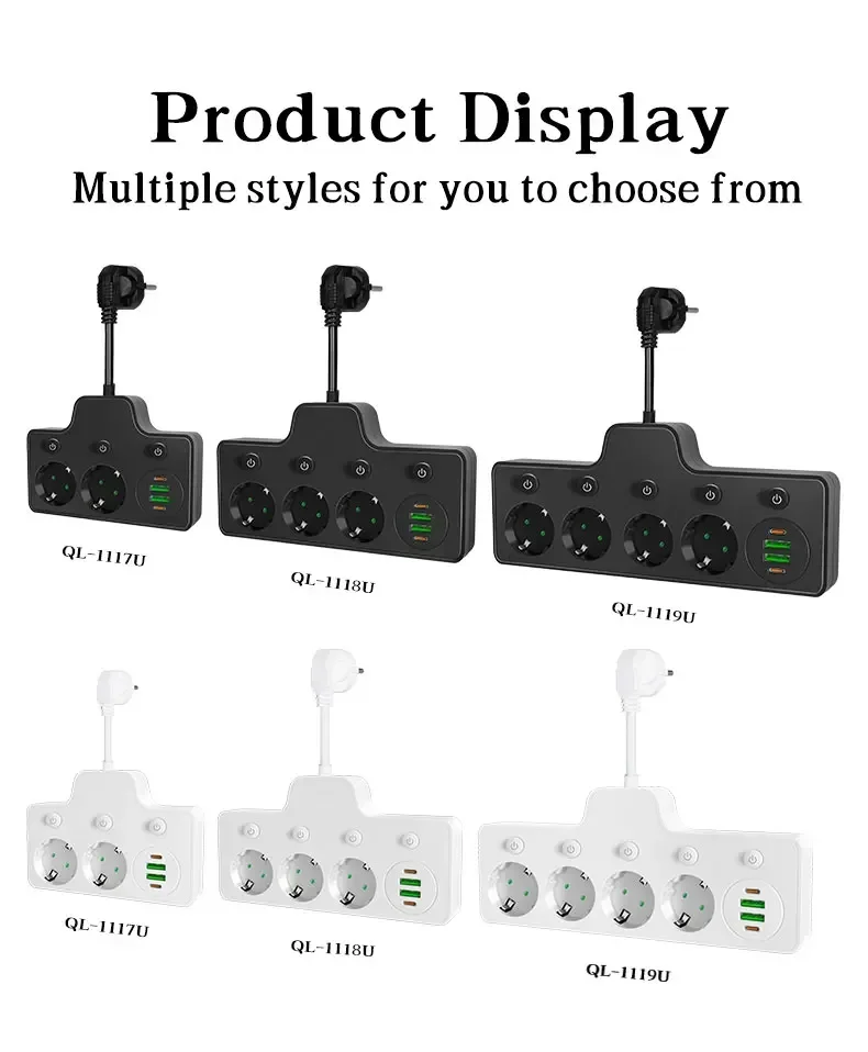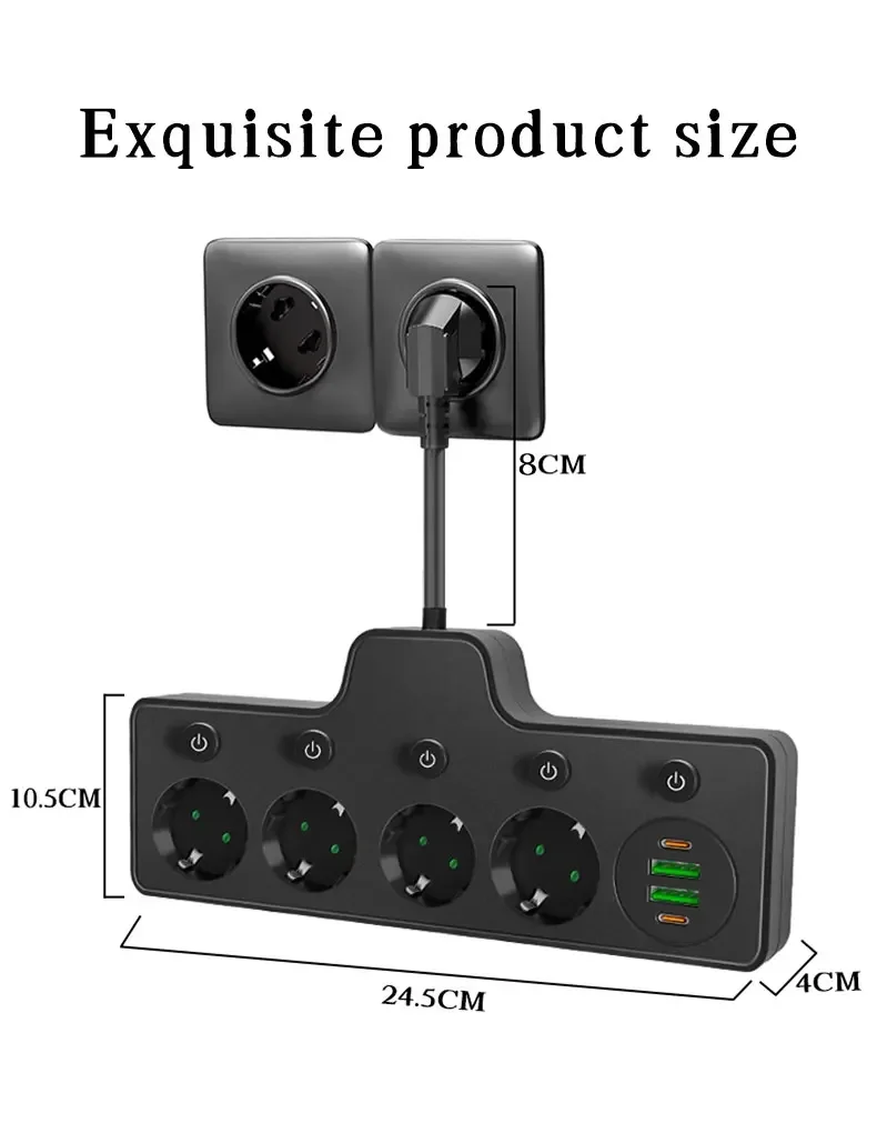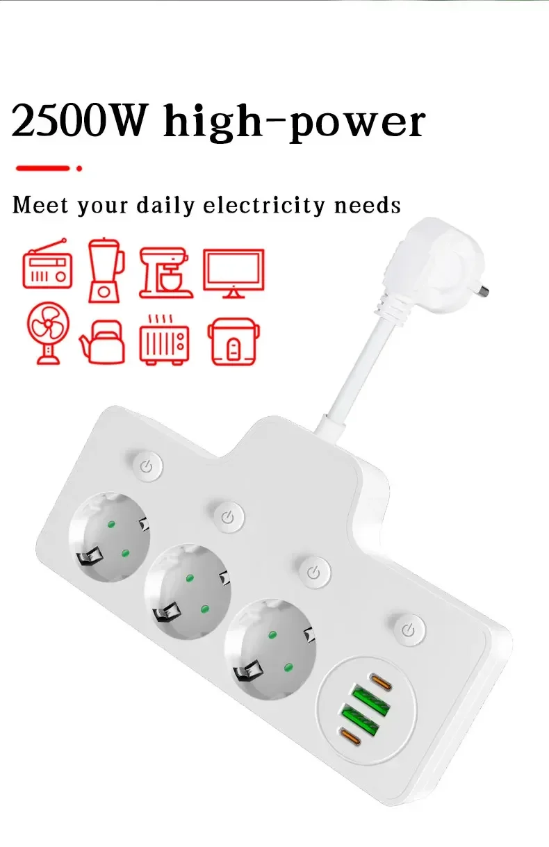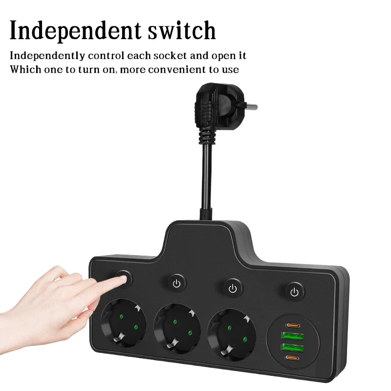 ปลั๊กพ่วงนี้มาพร้อมกับปลั๊กไฟ 2-3-4 และพอร์ต USB 2.1A ให้การเชื่อมต่อที่หลากหลายสําหรับใช้ในบ้านและสํานักงาน