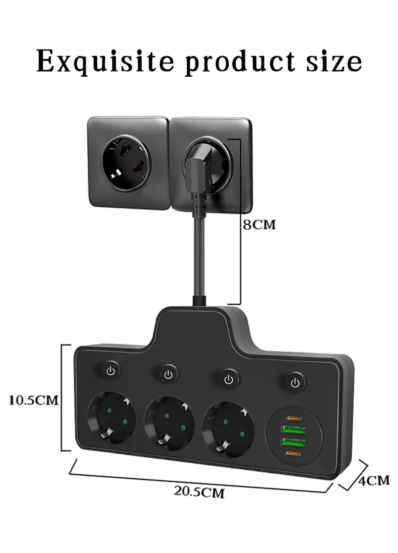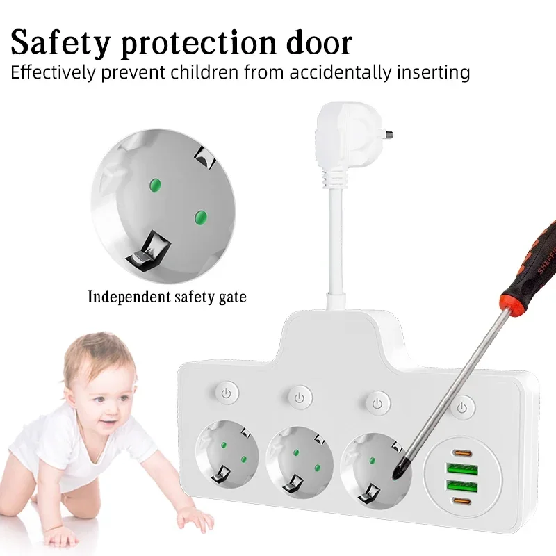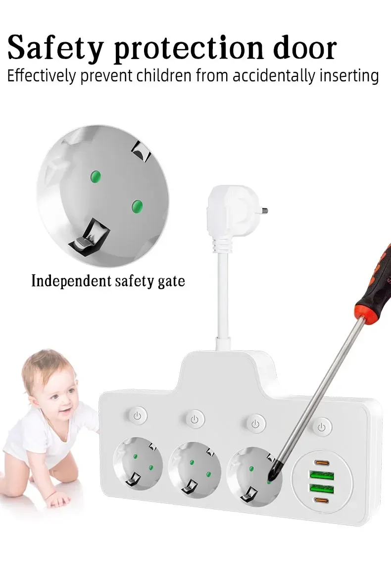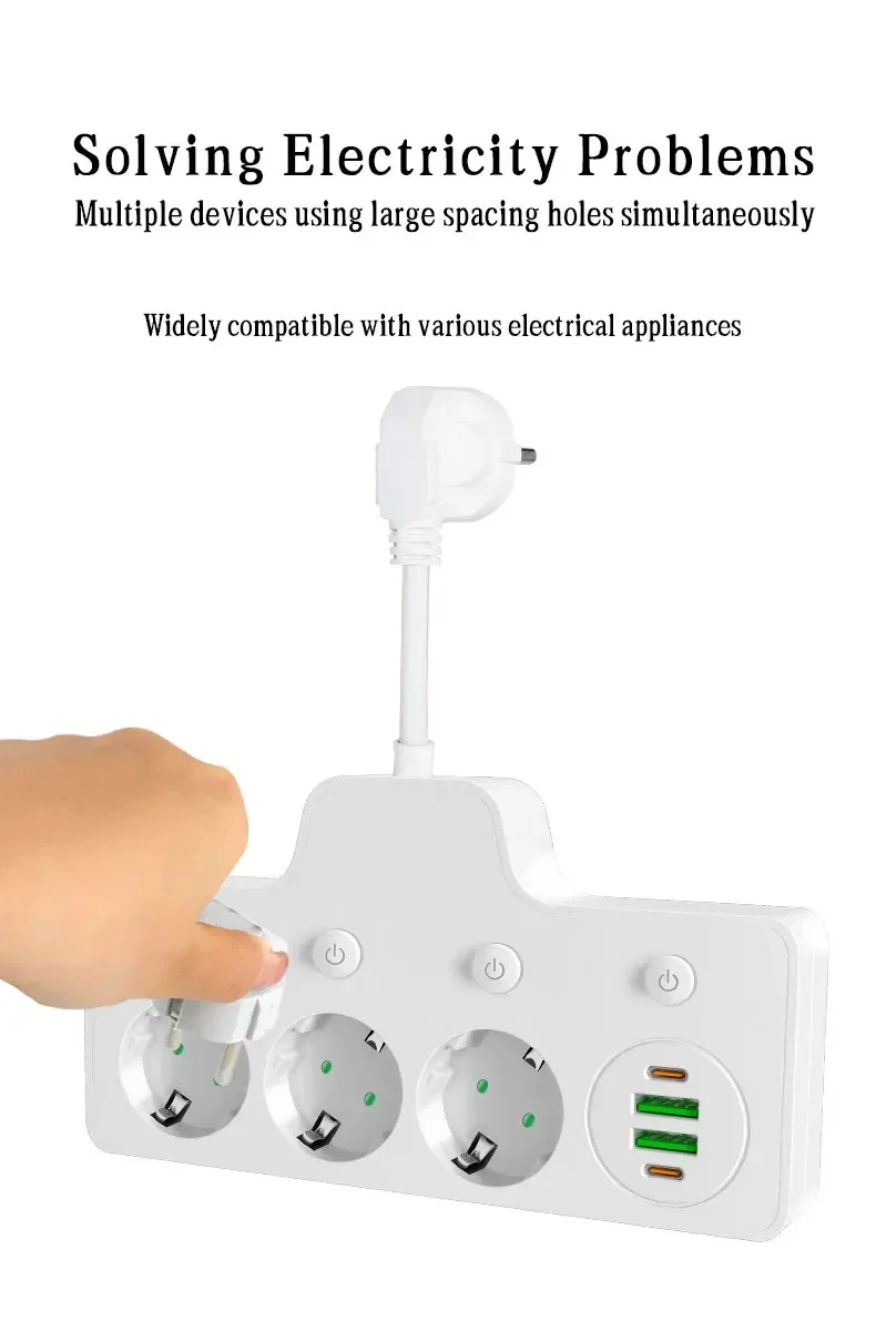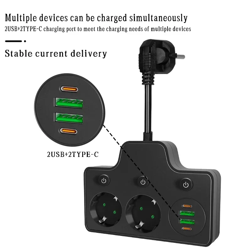 EU Plug 2 3 หรือ 4 ช่อง 2.1A 2 USB 2 พอร์ต Type-C ซ็อกเก็ตไฟฟ้า 8 ซม.ขยาย Power Strip สําหรับบ้านและสํานักงานซ็อกเก็ต