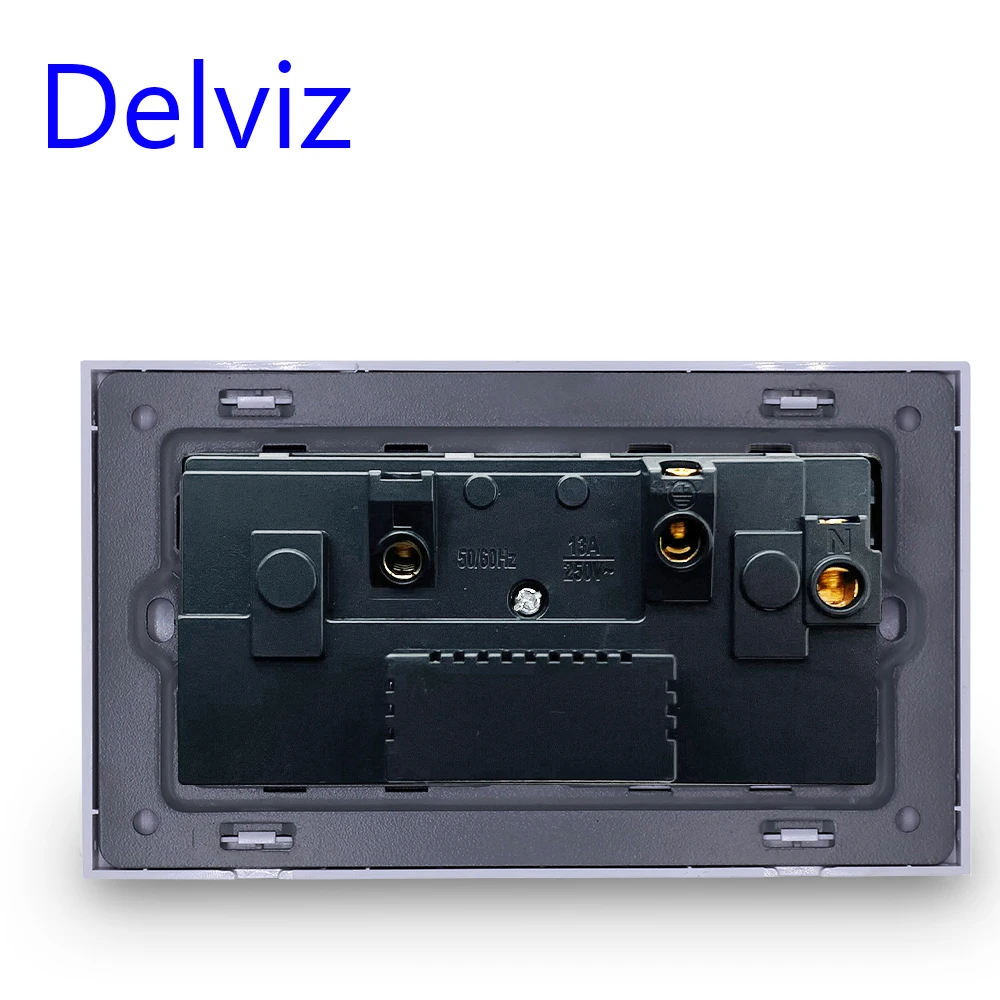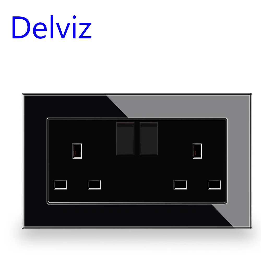 Delviz ที่ติดผนัง13A เต้ารับคู่ไม่มีโลโก้แผงกระจกคริสตัลเทมเปอร์สวิตช์ควบคุมเต้าเสียบสายไฟปลั๊กไฟฟ้ามาตรฐานของสหราชอาณาจักร