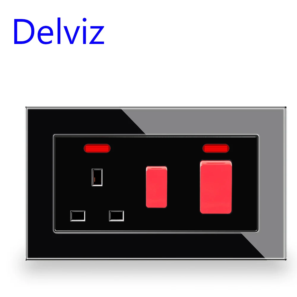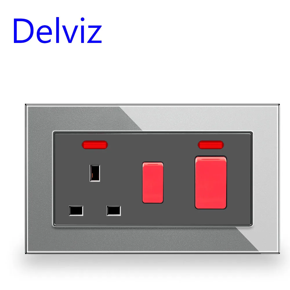 Delviz สวิตช์หม้อหุงข้าวไฟฟ้าในครัว, สวิตช์เบรคคู่แบบสองขั้วกำลังสูงแบบ45A เต้าเสียบปลั๊กไฟฟ้ามาตรฐานของสหราชอาณาจักรติดผนัง13A