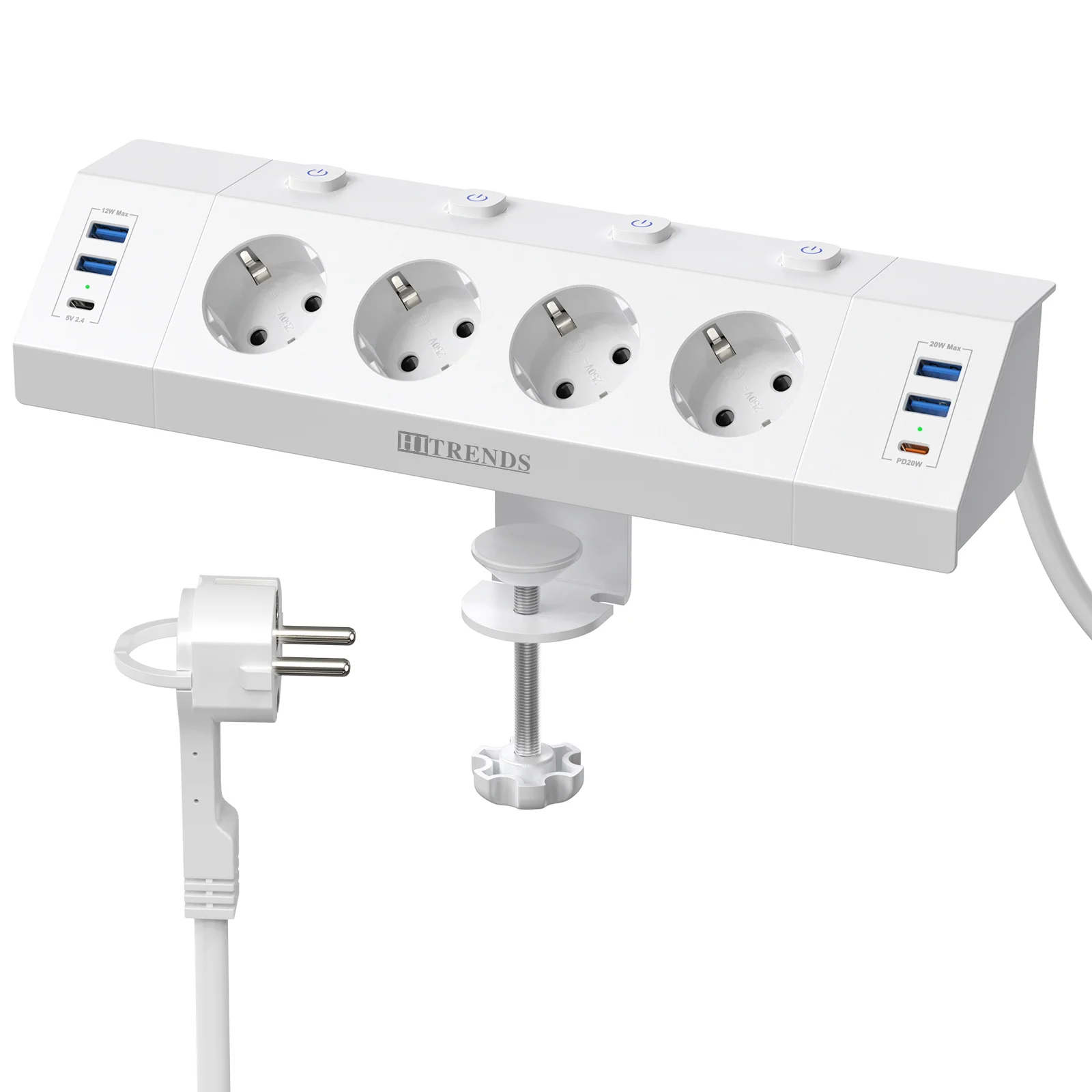เดสก์ท็อป USB Socket Power Strip พร้อมสวิตช์แต่ละตัว, โต๊ะ EU ปลั๊กหลายซ็อกเก็ต USB C PD 20W, 2 M สําหรับ Home