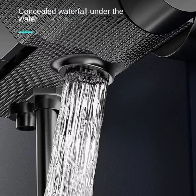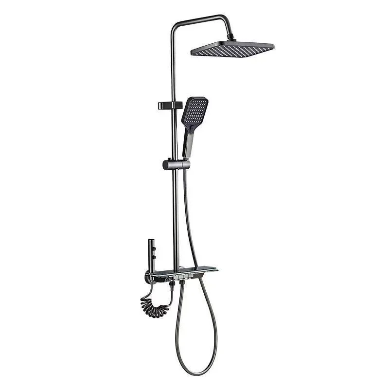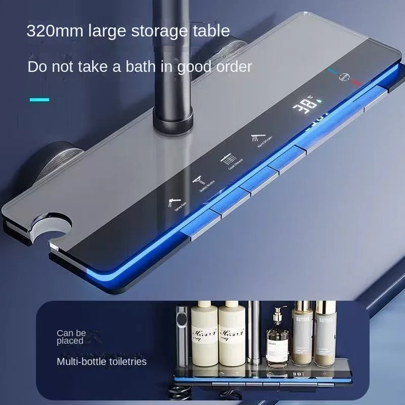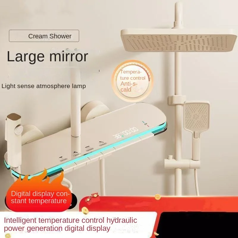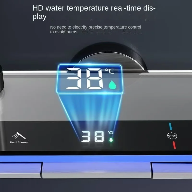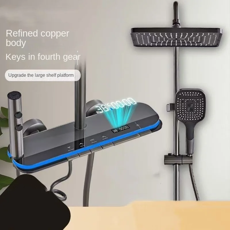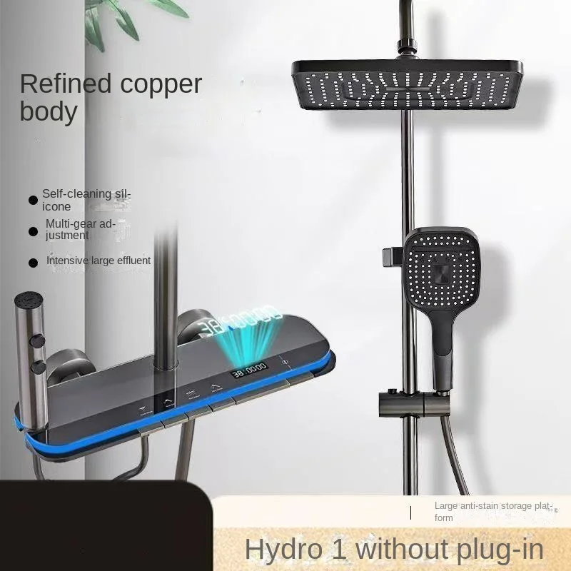 ชุดฝักบัวอุณหภูมิคงที่อัจฉริยะพร้อมตัวเครื่องทองแดง, การผลิตไฟฟ้าพลังน้ำ, ฟังก์ชั่น LED4, ปุ่มเปียโน