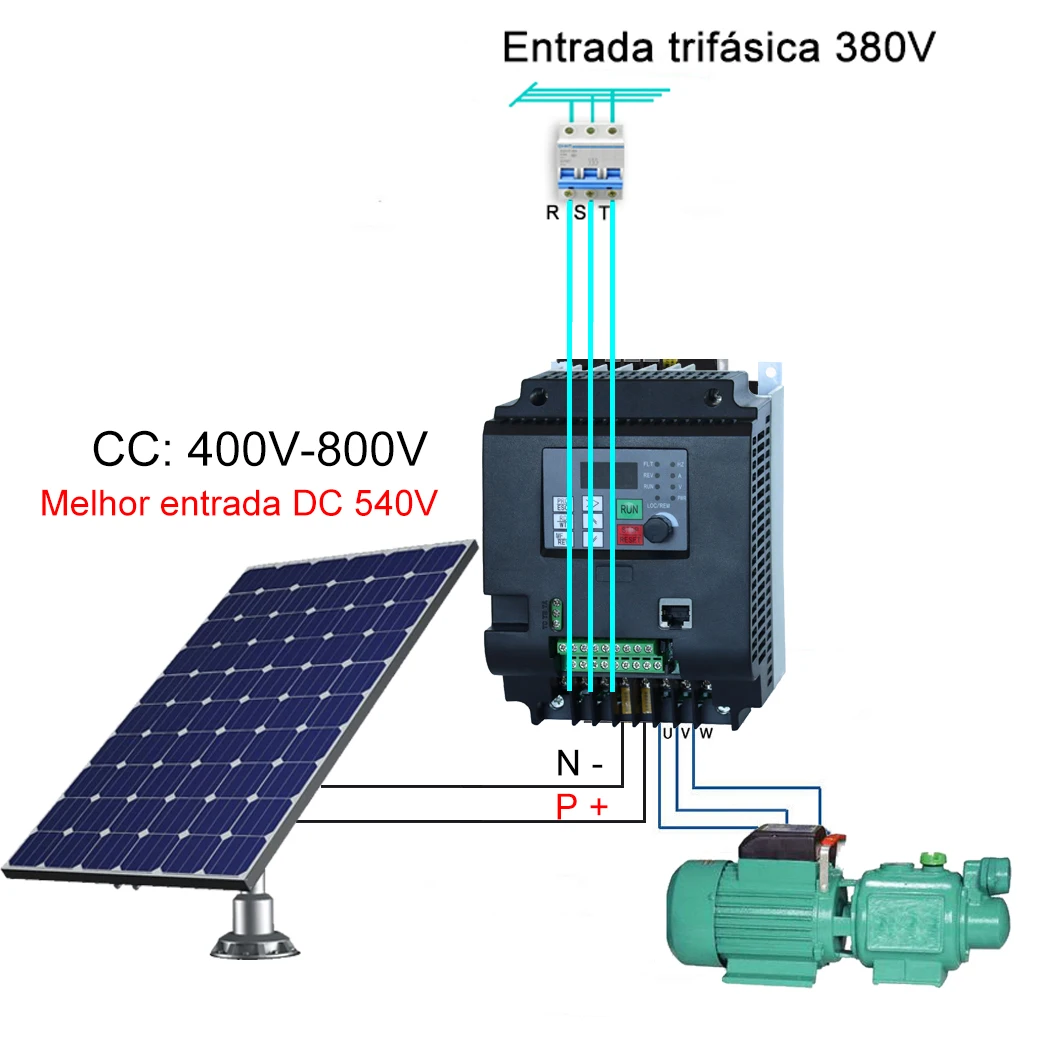 5. Regarding how to configure solar panels (assuming that the solar panels are configured as 24V 300W and the motor power is 4KW), such as 220V motors, the total voltage of solar panels in series meets DC 200V-400V (it is best to configure 320V), then 380V motors, The series voltage meets the DC 400V-700V (optimal configuration 540V) voltage calculation method: Take the best configuration 540V as an example, 540V/24V≈23. The power calculation method is: 1.2 times larger than the motor power, the solar panel power is 300W, the motor is 4KW, (4000X1.2)/300=16 (then the best configuration is to use 23, take the maximum value)