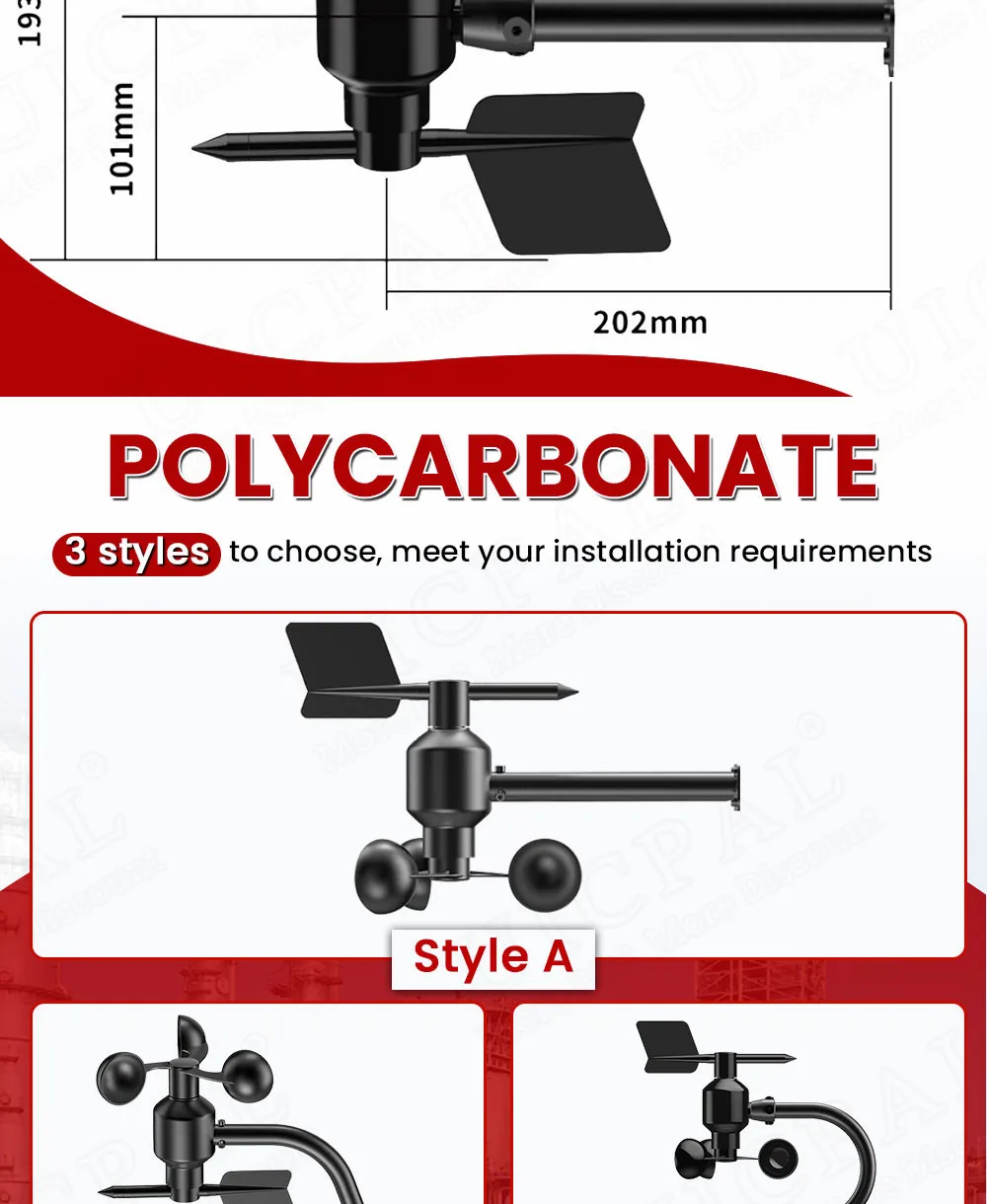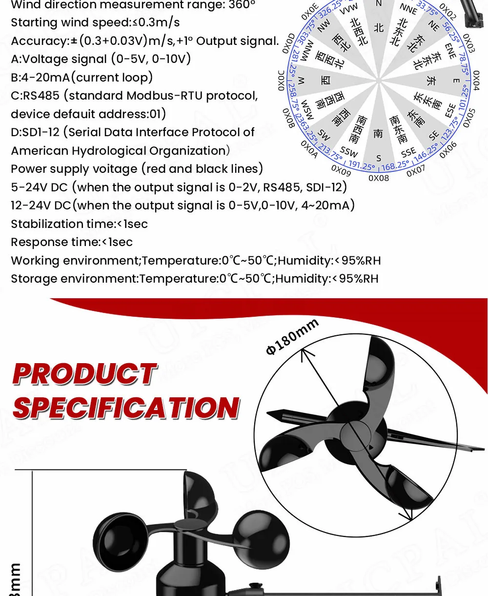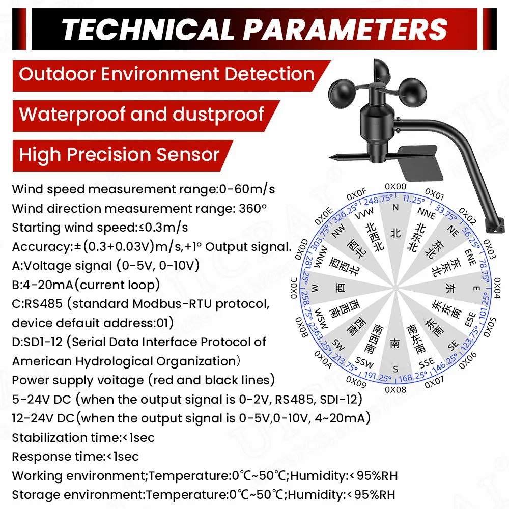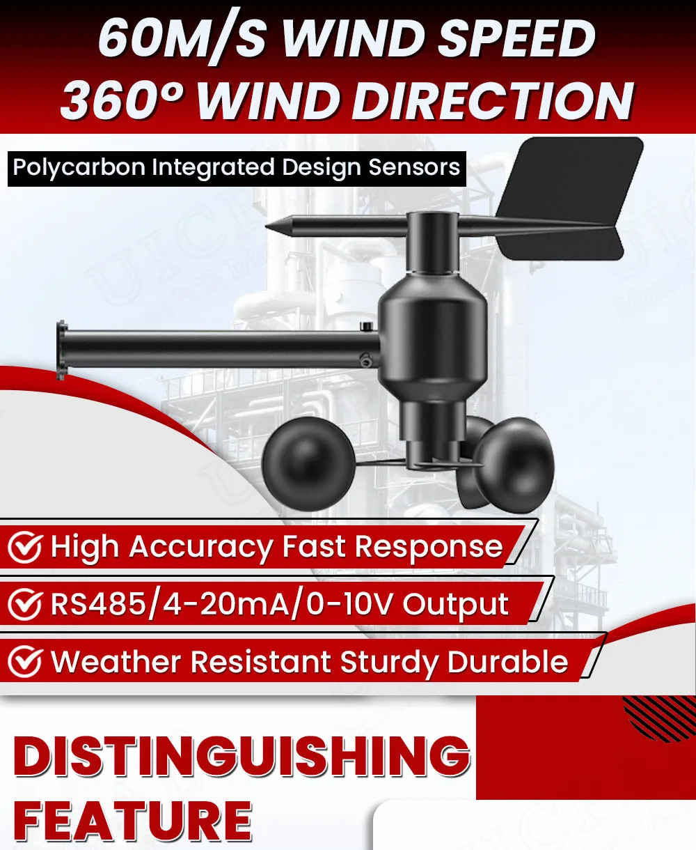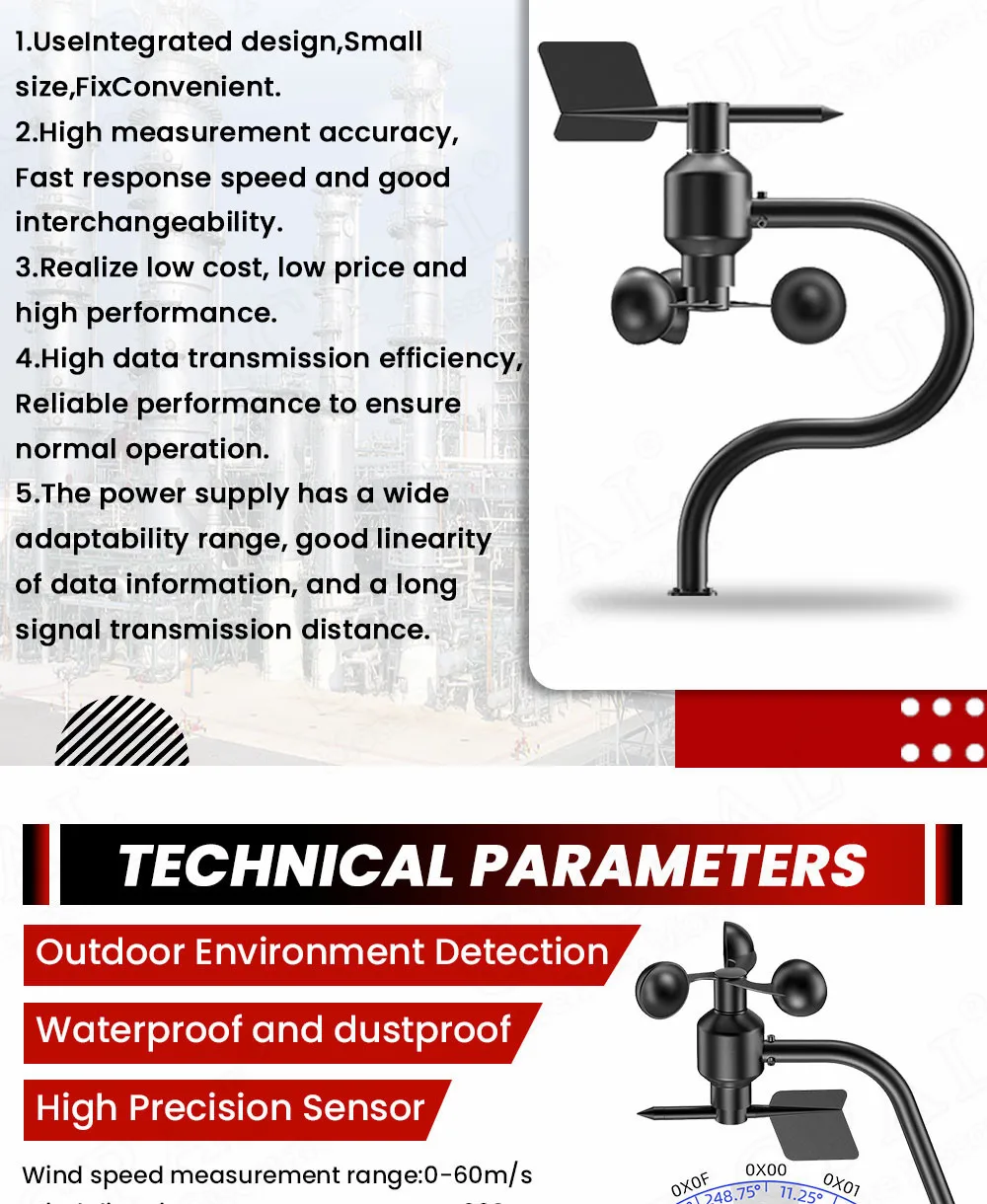 0-60เมตร/วินาทีเซ็นเซอร์ความเร็วลม ° 360ตัวส่งสัญญาณตรวจสอบสถานีสภาพอากาศทางการเกษตร