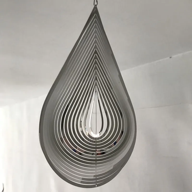 สปินเนอร์เป่าลม2022ทรงสี่เหลี่ยมหยดน้ำสแตนเลส3D กระดิ่งลมลมหมุนได้ทั้งสวนกลางแจ้งและในร่ม