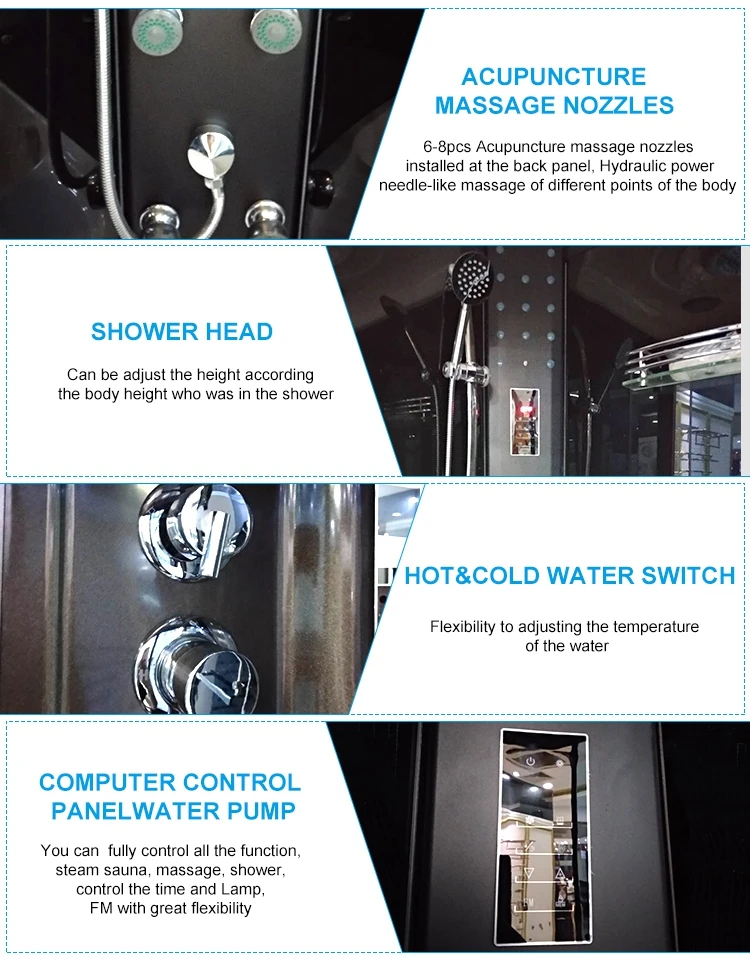 ห้องน้ำสำเร็จรูปพร้อมฝักบัวอาบน้ำ ห้องอบไอน้ำหรูหรา อ่างอาบน้ำและอ่างอาบน้ำแบบมีฝาปิดกระจก ห้องสปา อ่างสปา ห้องซาวน่า