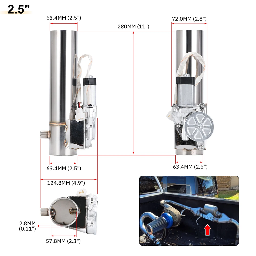 - คัตเอาท์ไอเสียไฟฟ้าขนาด 2.5 นิ้วหรือ 3 นิ้ว