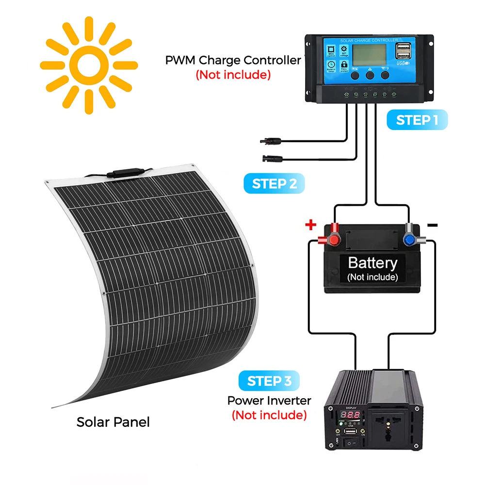 แผงโซลาร์เซลล์แบบยืดหยุ่น 100 วัตต์ 1 ชิ้น
