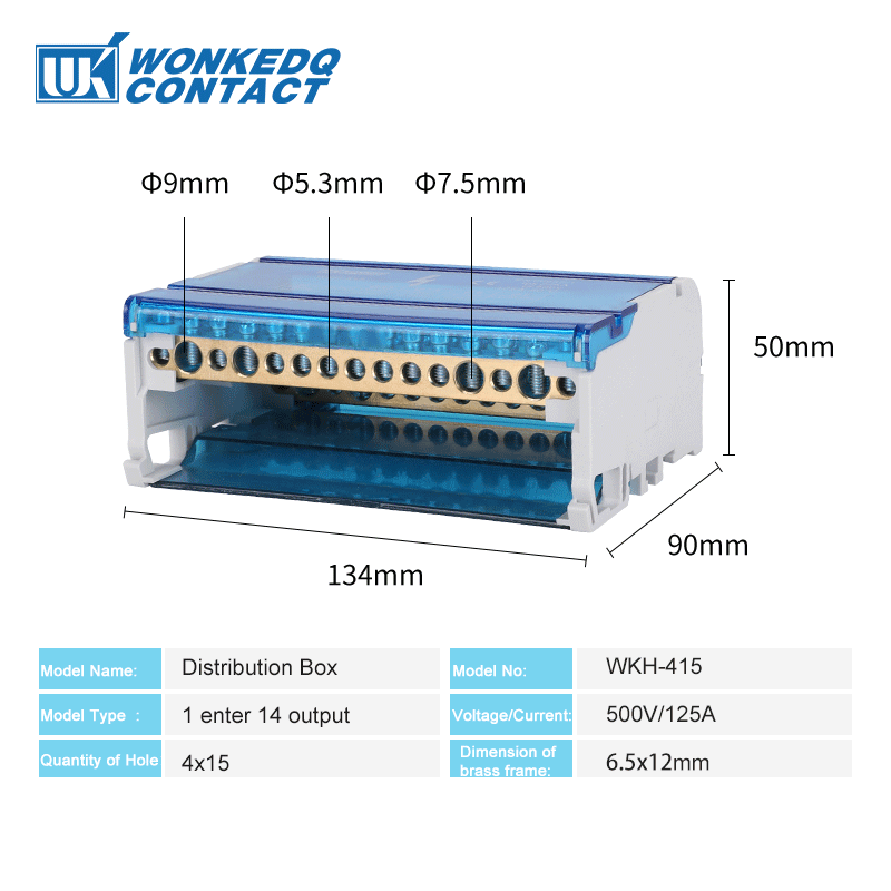 Din Rail Terminal Block WKH-207/211/215/407/411/415 Modular Distribution Block สกรู Universal Electric Wire Power Junction Box