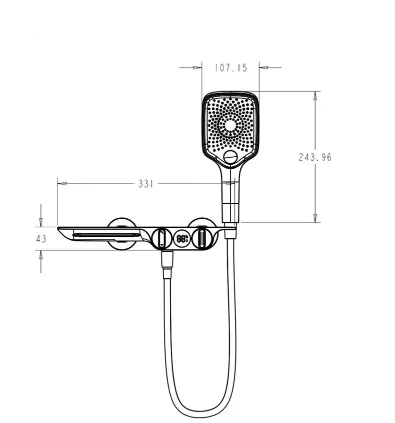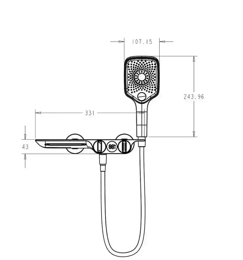 ชุดฝักบัว Starry Sky Light แบบสี่ฟังก์ชั่น พร้อมหน้าจอดิจิตอลอัจฉริยะ ระบบฝักบัวแบบเรนชาวเวอร์ติดผนัง ชุดก๊อกน้ำฝักบัวแบบกด
