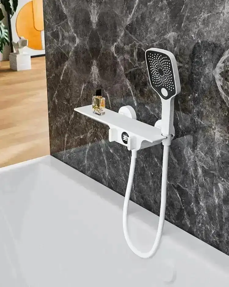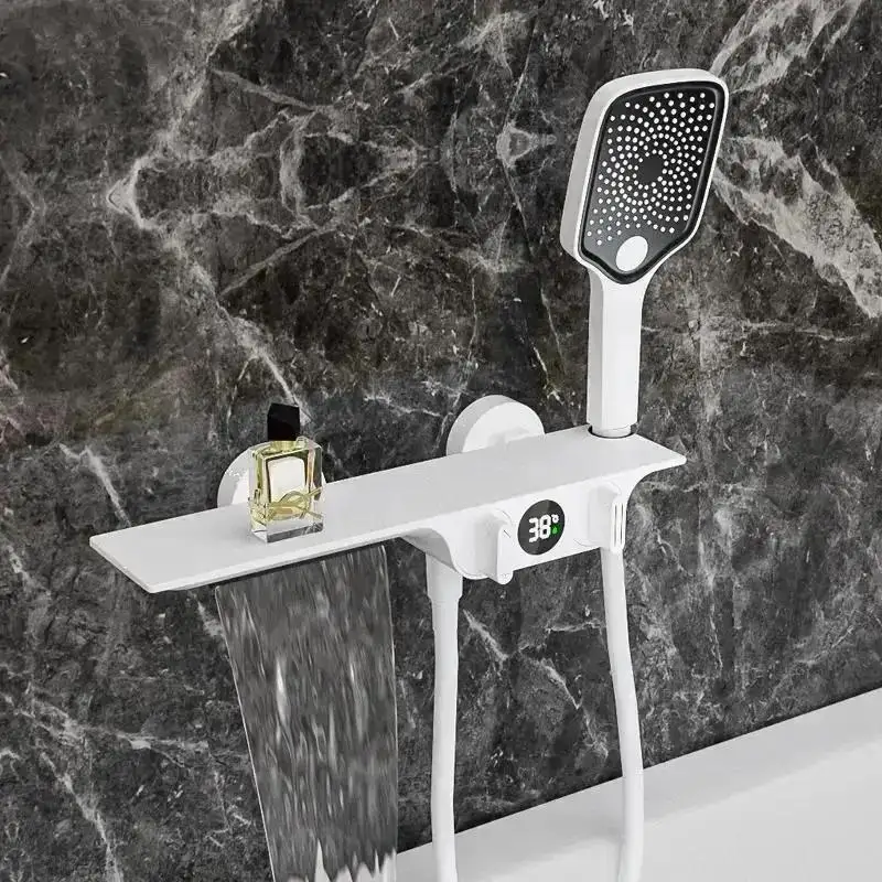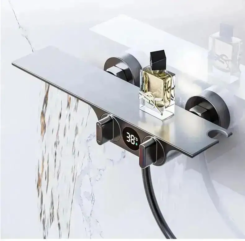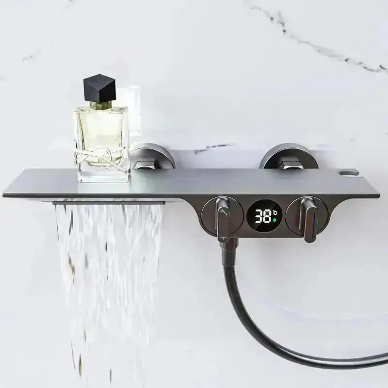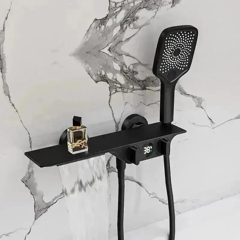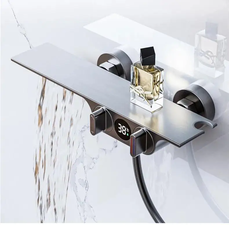ชุดก๊อกน้ําอ่างอาบน้ําน้ําตกแบบติดผนัง จอแสดงผลดิจิตอล ชุดก๊อกน้ําฝักบัวทองเหลืองอัจฉริยะ