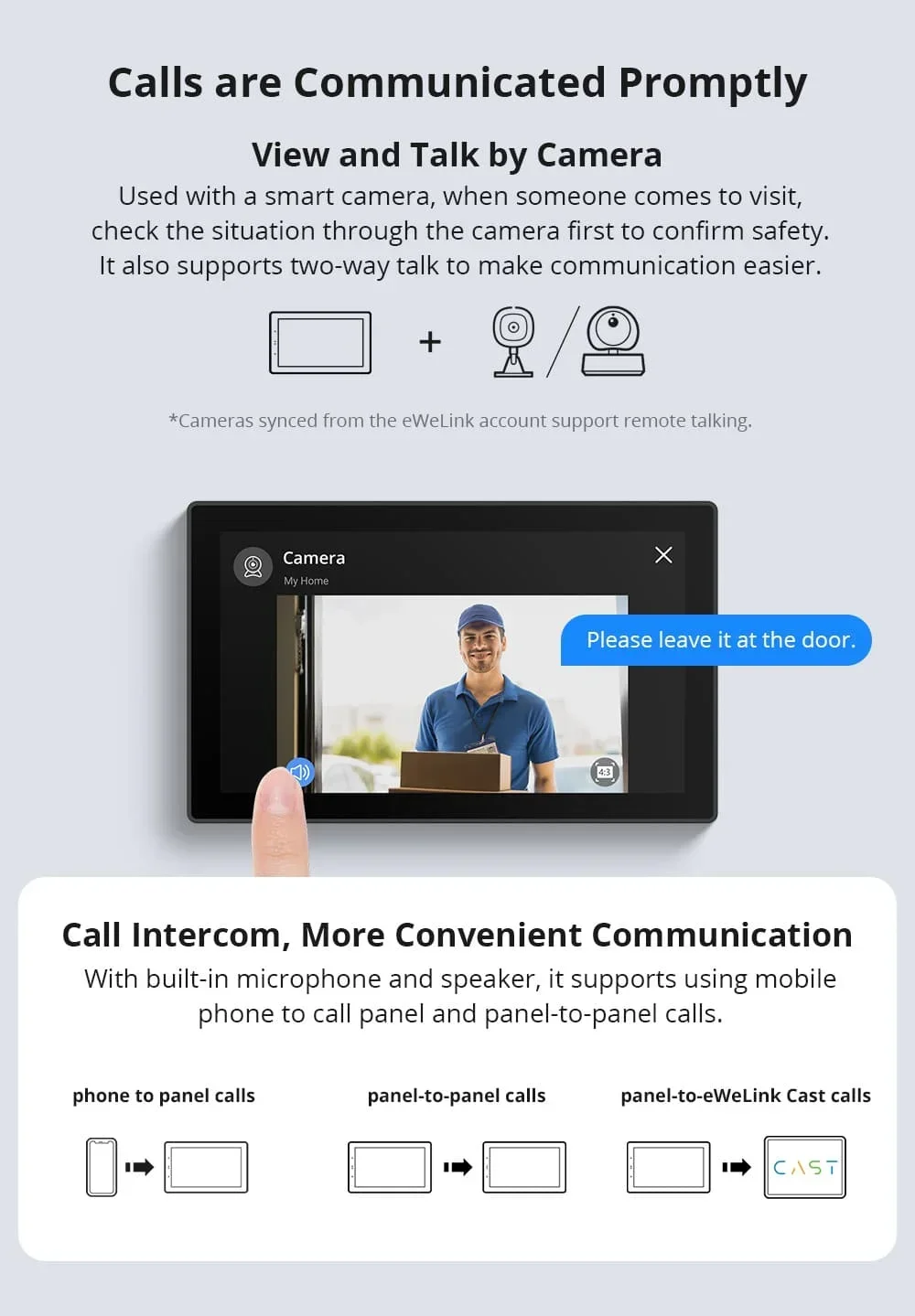 NSPanel Pro สามารถใช้เป็นจอแสดงผลและรองรับการเพิ่มกล้องสี่ประเภทต่อไปนี้สำหรับการตรวจสอบแบบสด ช่วยให้ดูห้องนั่งเล่น โรงรถ ห้องนอน และอื่นๆ ได้แบบเรียลไทม์