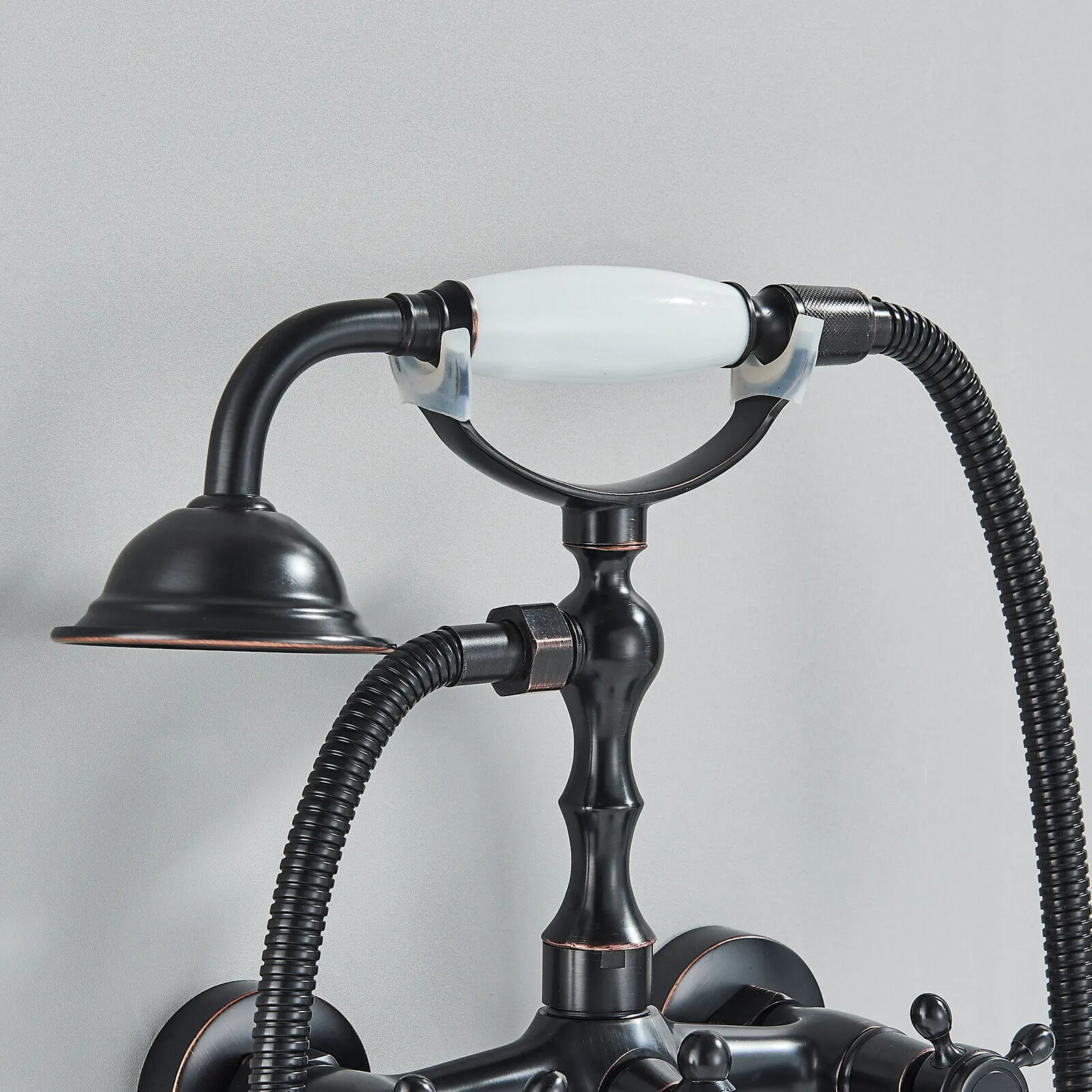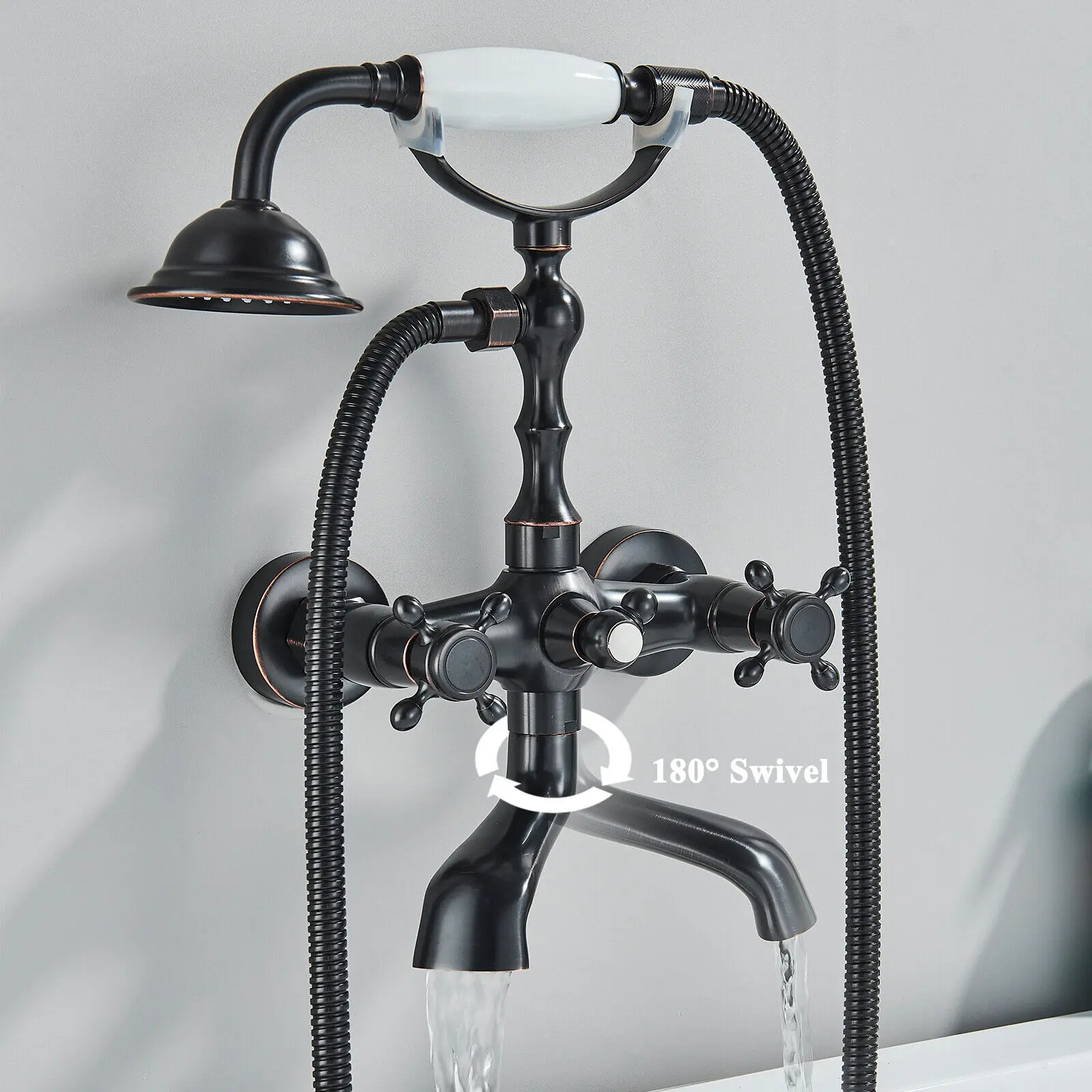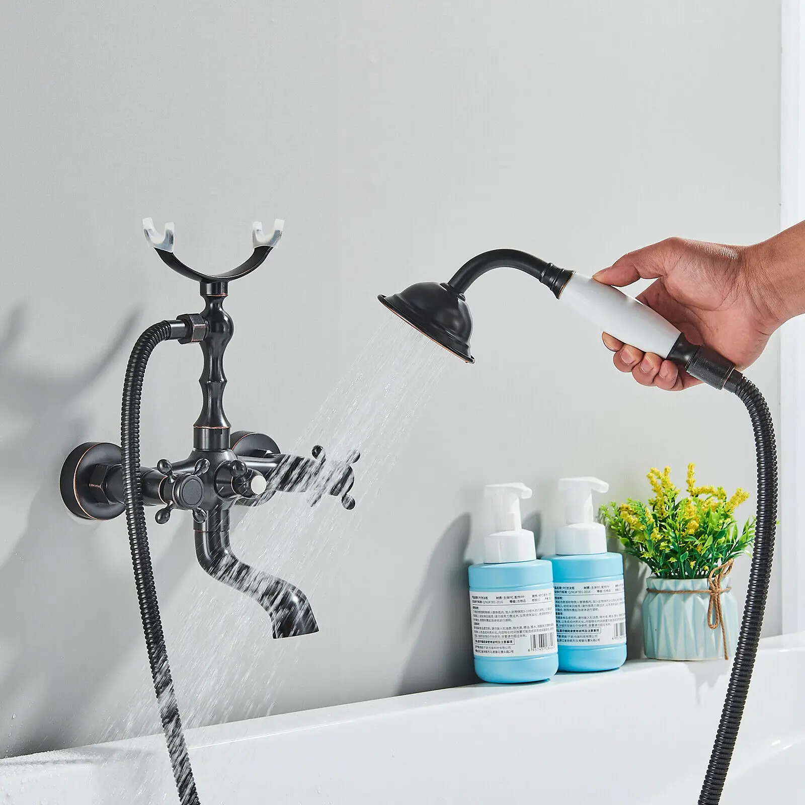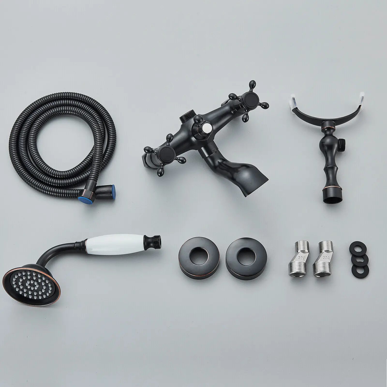 สีดําน้ํามัน Rubbed ทองเหลือง Clawfoot อ่างก๊อกน้ํา Wall Mount อ่างอาบน้ํา FILLER ก๊อกน้ํา Hand Shower
