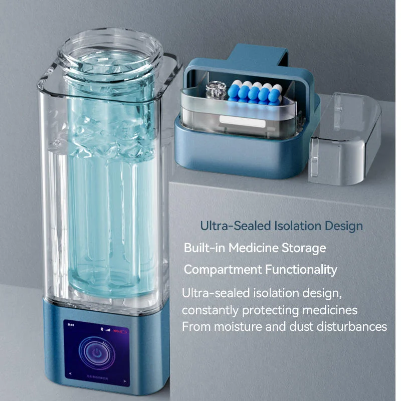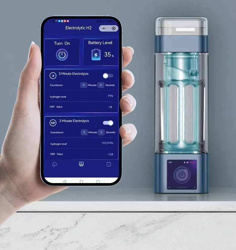 แก้วน้ำไฮโดรเจนเป็นอุปกรณ์พกพาสำหรับผลิตน้ำไฮโดรเจนที่ใช้เทคโนโลยีอิเล็กโทรไลซิสขั้นสูงในการผลิตไฮโดรเจนโดยการแยกโมเลกุลของน้ำผ่านกระบวนการอิเล็กโทรไลซิส และผสมลงในน้ำเพื่อสร้างอุปกรณ์ใช้ในครัวเรือนที่อุดมไปด้วยน้ำไฮโดรเจนออกแบบมาเป็นพิเศษสำหรับใช้ในครัวเรือนสินค้าประกอบด้วยตัวถ้วย ฝาปิด และฐานส่วนประกอบหลักของแก้วน้ำที่อุดมด้วยไฮโดรเจนอยู่ภายในฐาน: ประกอบด้วยอุปกรณ์อิเล็กโทรไลต์, แหล่งจ่ายไฟ (แบตเตอรี่ในตัว), และระบบควบคุมเป็นหลักอุปกรณ์อิเล็กโทรไลซิสมีหน้าที่ในการดำเนินกระบวนการอิเล็กโทรไลซิส โดยแหล่งจ่ายไฟจะจัดหาพลังงานไฟฟ้าที่จำเป็นสำหรับกระบวนการอิเล็กโทรไลซิส และระบบควบคุมจะช่วยรับประกันความปลอดภัยและความเสถียรของกระบวนการอิเล็กโทรไลซิสหนึ่งในเทคโนโลยีหลักของแก้วน้ำที่อุดมด้วยไฮโดรเจนคือการแยกน้ำด้วยไฟฟ้าเพื่อผลิตไฮโดรเจนวิธีนี้ใช้อุปกรณ์อิเล็กโทรไลซิสเพื่อแยกน้ำออกเป็นไฮโดรเจนและออกซิเจนส่วนอิเล็กโทรดประกอบด้วยอิเล็กโทรดบวกและอิเล็กโทรดลบซึ่งถูกแยกออกจากกันด้วยตัวแยก โดยอันหนึ่งเป็นแอโนดสำหรับสร้างน้ำที่อุดมด้วยไฮโดรเจน และอีกอันเป็นแคโทดสำหรับสร้างก๊าซออกซิเจนที่ส่วนแอโนด ไฮโดรเจนไอออน (H+) ในน้ำจะถูกลดเป็นก๊าซไฮโดรเจน (H2) ซึ่งทำให้เกิดน้ำที่อุดมไปด้วยไฮโดรเจนออกซิเจนที่ผลิตได้จะถูกปล่อยออกจากถ้วยผ่านการออกแบบพิเศษของผลิตภัณฑ์เพื่อแยกไฮโดรเจนและออกซิเจนออกจากกัน