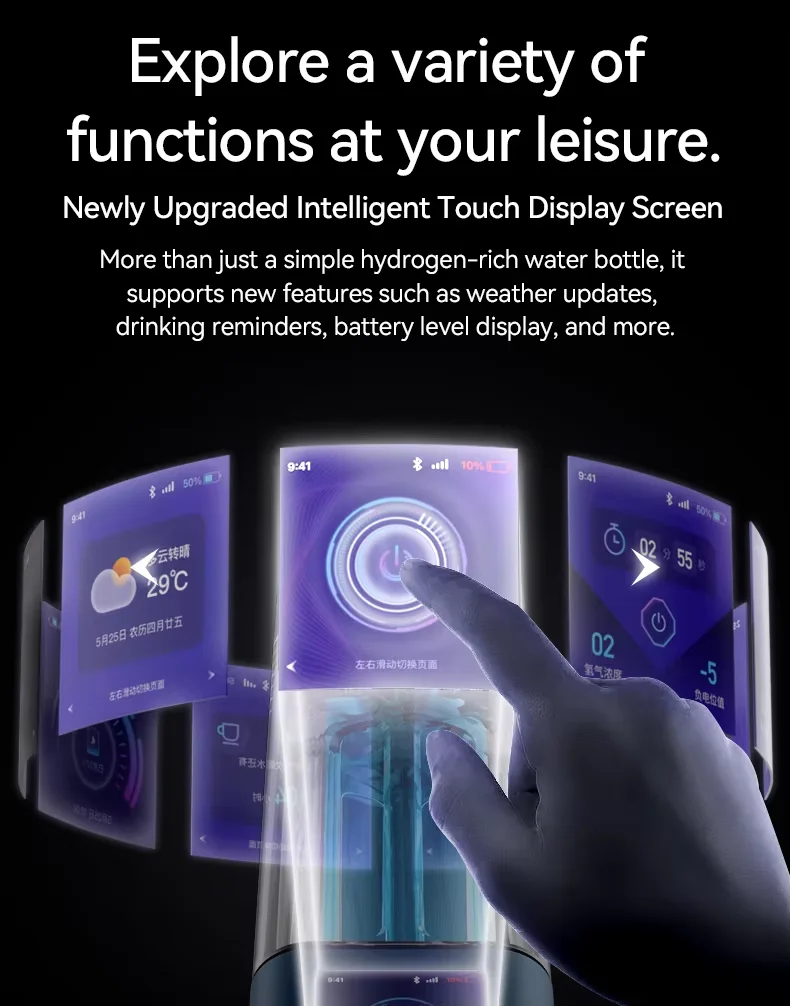 ชุดของขวัญสุดหรู เครื่องผลิตน้ำไฮโดรเจนแบบพกพา 9000PPB พร้อมระบบควบคุมผ่านแอปพลิเคชัน ระบบฆ่าเชื้อด้วยรังสียูวี และฟังก์ชันล้างย้อนกลับ