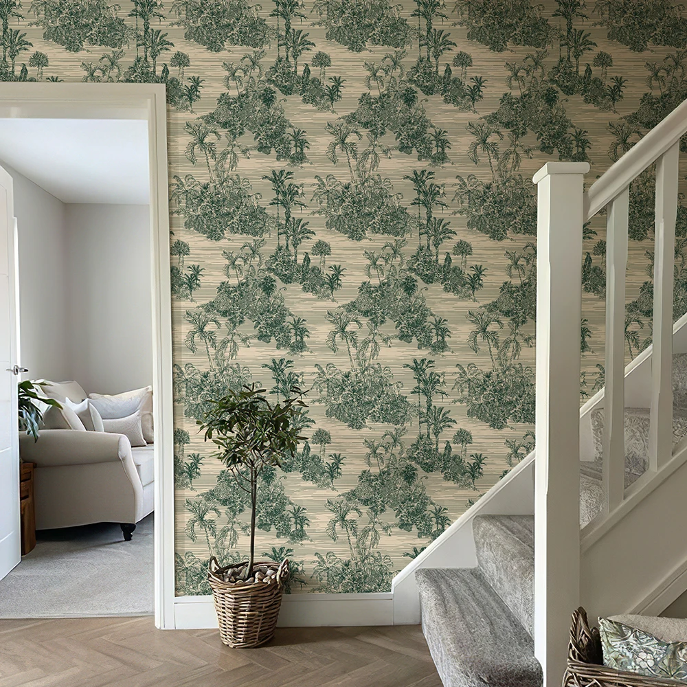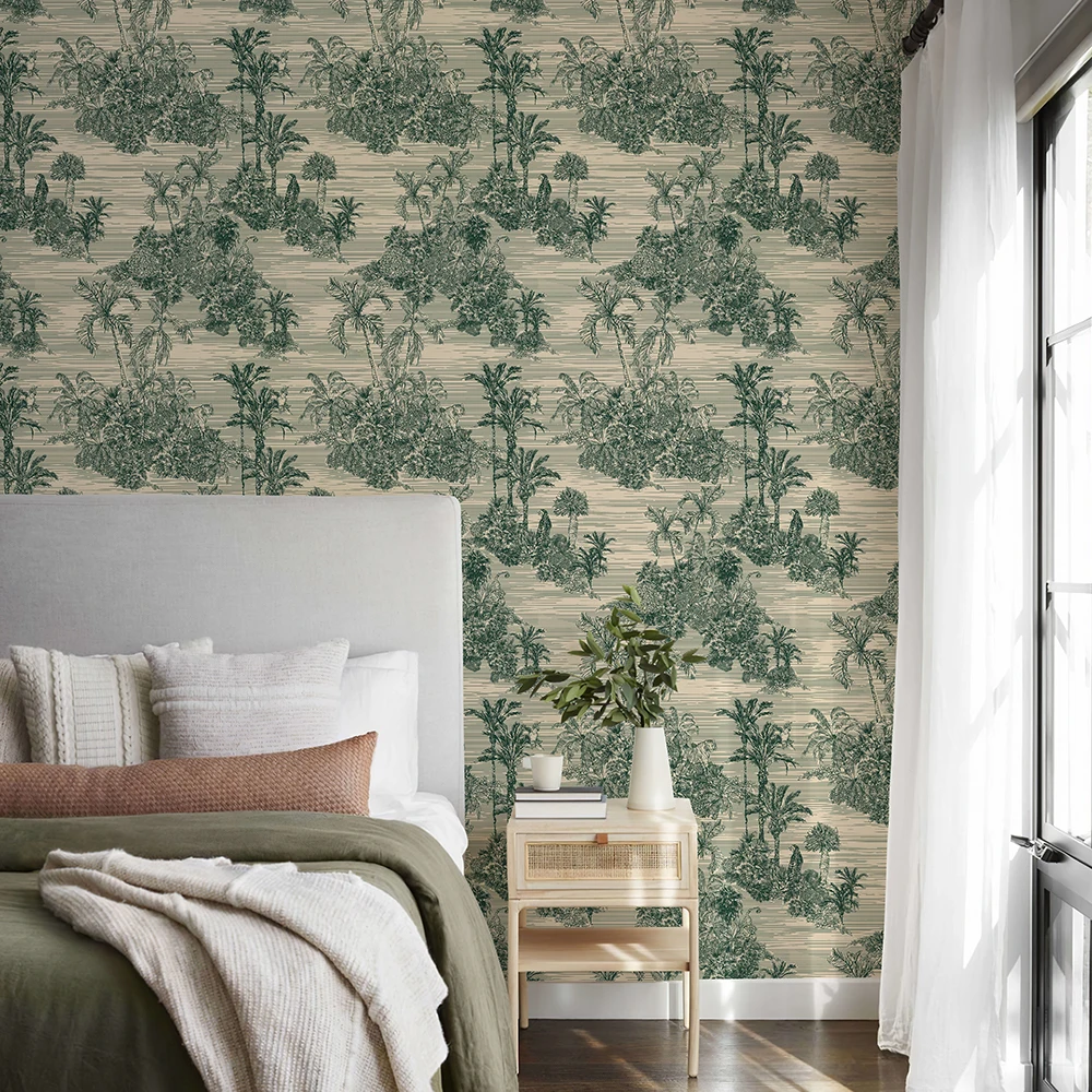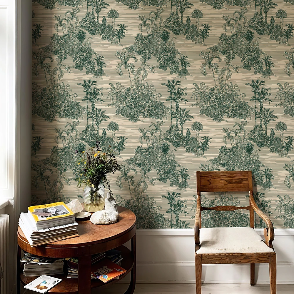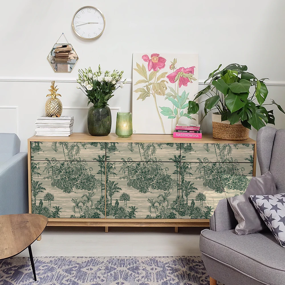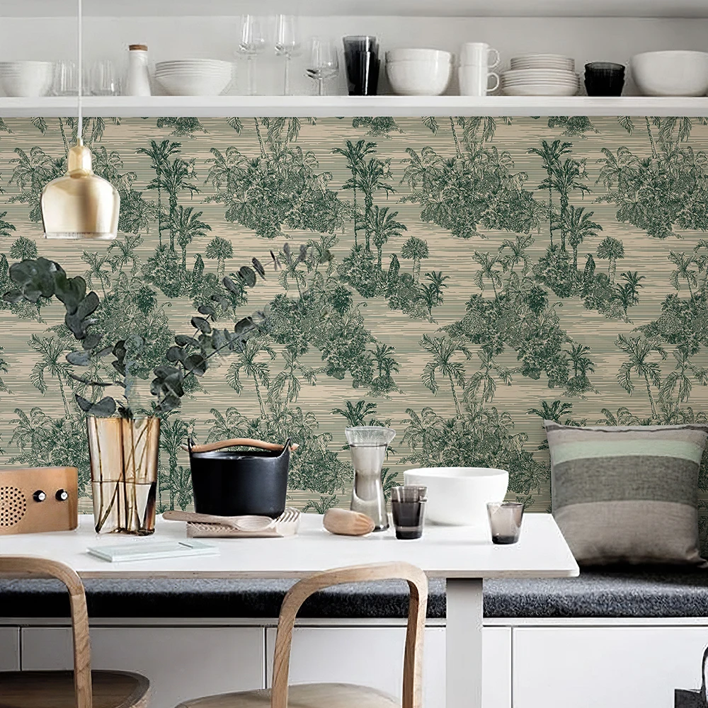 ป่าสีเขียว PVC Peel และ Stick วอลล์เปเปอร์ Rain Forest ต้นไม้ไวนิล Wall Decor Retro กันน้ําเฟอร์นิเจอร์ตู้สติกเกอร์