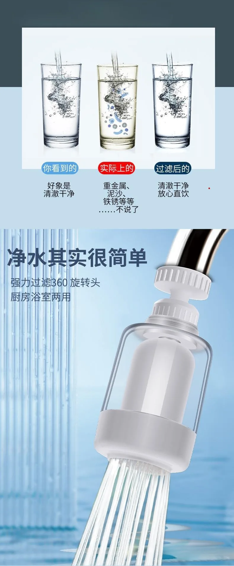 เครื่องกรองน้ำก๊อกน้ำแบบสแปลชบูสเตอร์ ดื่มได้โดยตรง ป้องกันน้ำกระเด็น โปร่งใส ทำความสะอาด ขจัดตะกรัน