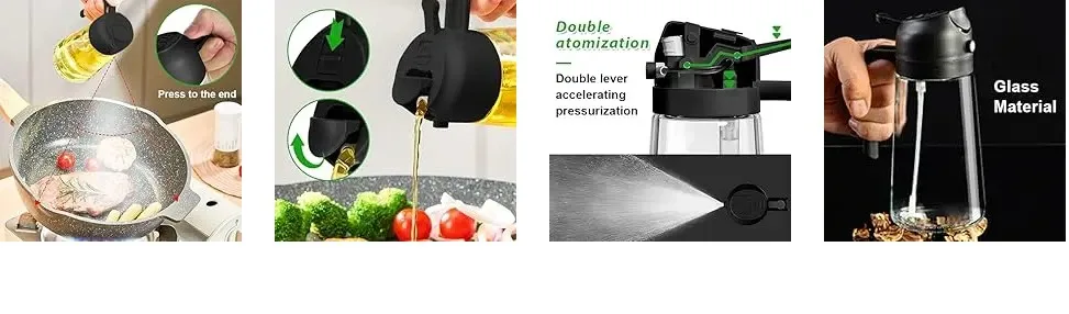 การจ่ายน้ำมันแบบคู่: เครื่องจ่ายน้ำมันและสเปรย์น้ำมัน 2-in-1 นี้ช่วยให้คุณสามารถฉีดพ่นหรือเทน้ำมันได้อย่างสะดวกและง่ายดายนี่คือขวดจ่ายน้ำมันอเนกประสงค์ที่สามารถพ่นและเทได้ในขวดเดียว ช่วยให้ห้องครัวของคุณเป็นระเบียบและใช้งานได้อย่างมีประสิทธิภาพ