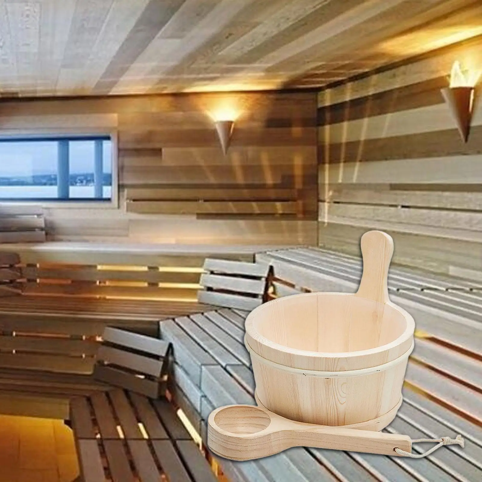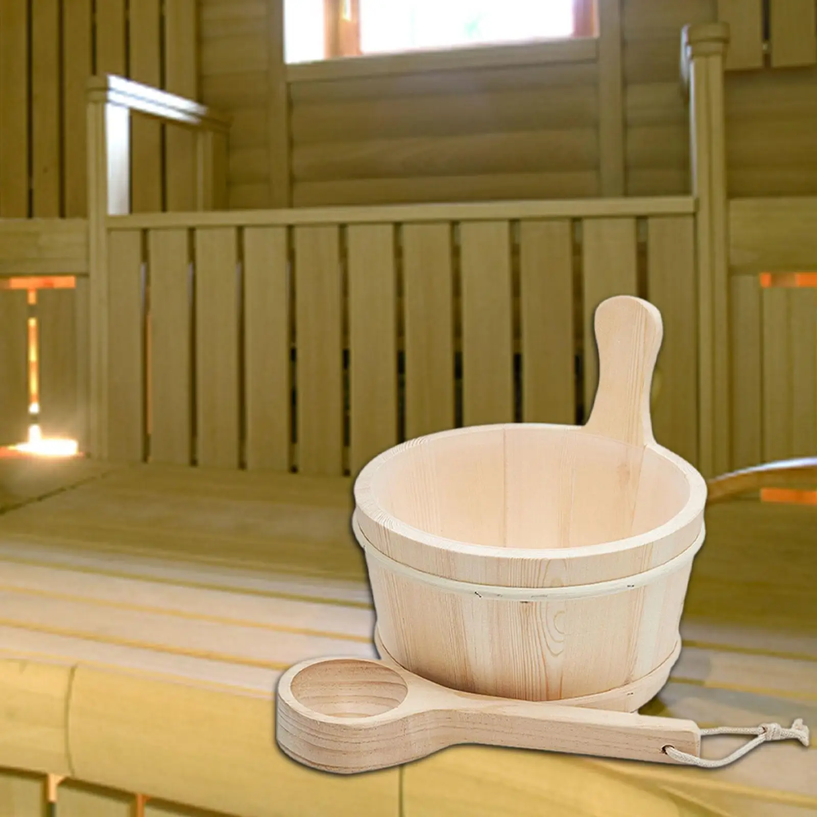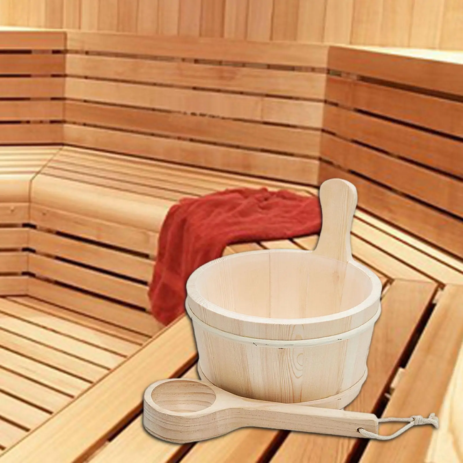 ถังซาวน่าและทัพพี ถังน้ํา อเนกประสงค์ ทนทาน พร้อมชุดอุปกรณ์จับสําหรับห้องอบไอน้ํา ศูนย์สปา บ้านฤดูหนาว