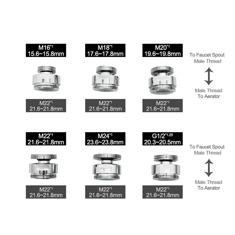 WASOURLF ปรับ360ก๊อกน้ำ Aerator อุปกรณ์เสริมอะแดปเตอร์ด้ายชาย M24 M20 1/2 Kitchen Tap อุปกรณ์ Rotating Part