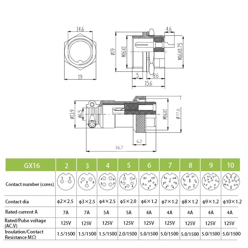 Connector Type: GX16 Nut type-2/3/4/5/6/7/8/9/10