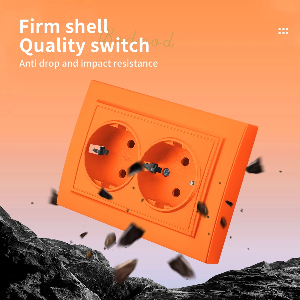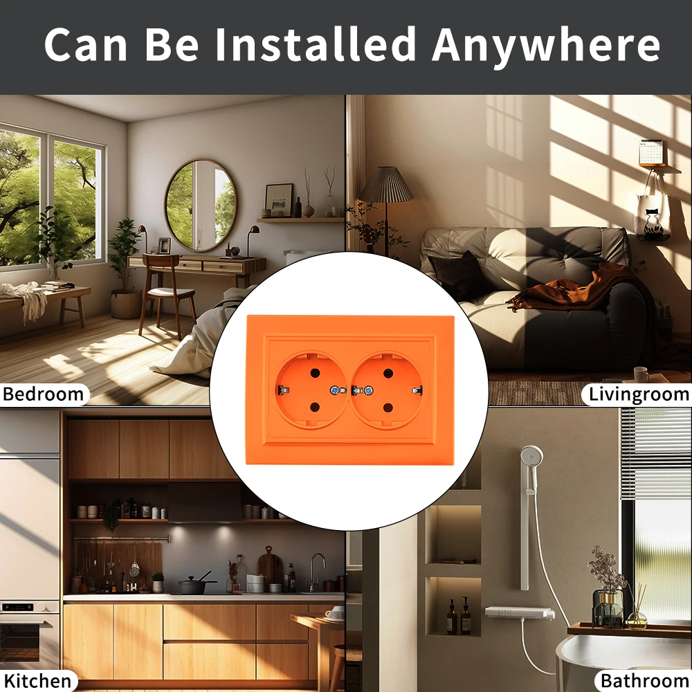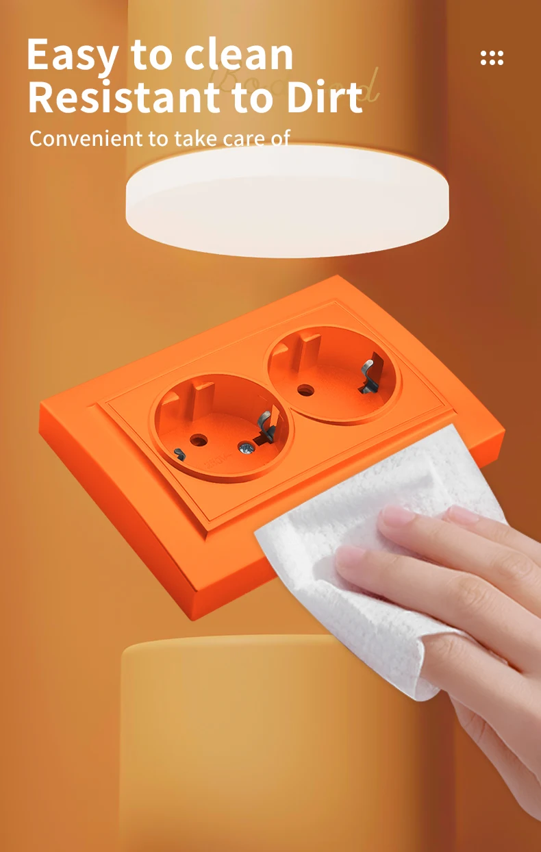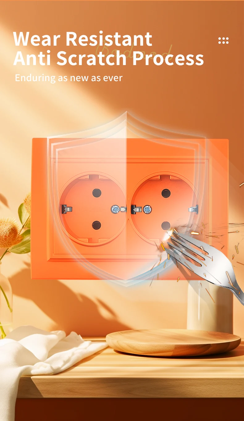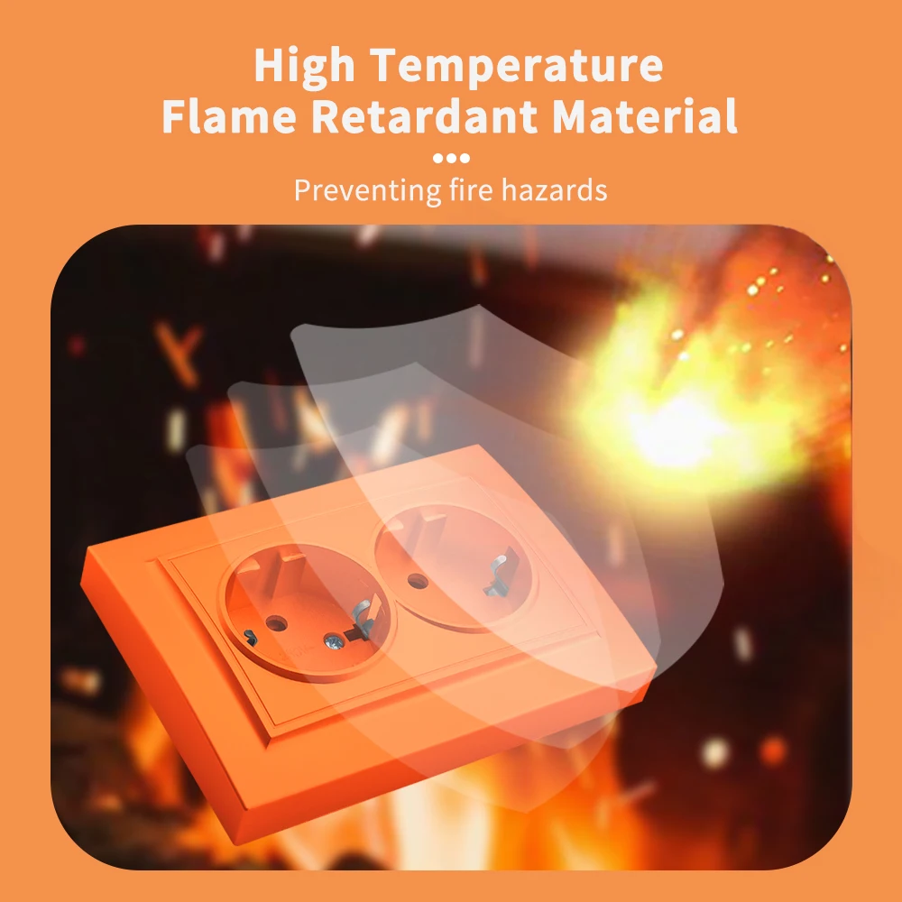 WESA สีส้มผนังฝังปลั๊กไฟ 2 ซ็อกเก็ต EU ไฟฟ้า Outlet พร้อม Ground สารหน่วงไฟสีสเปรย์ซ็อกเก็ตพลาสติก