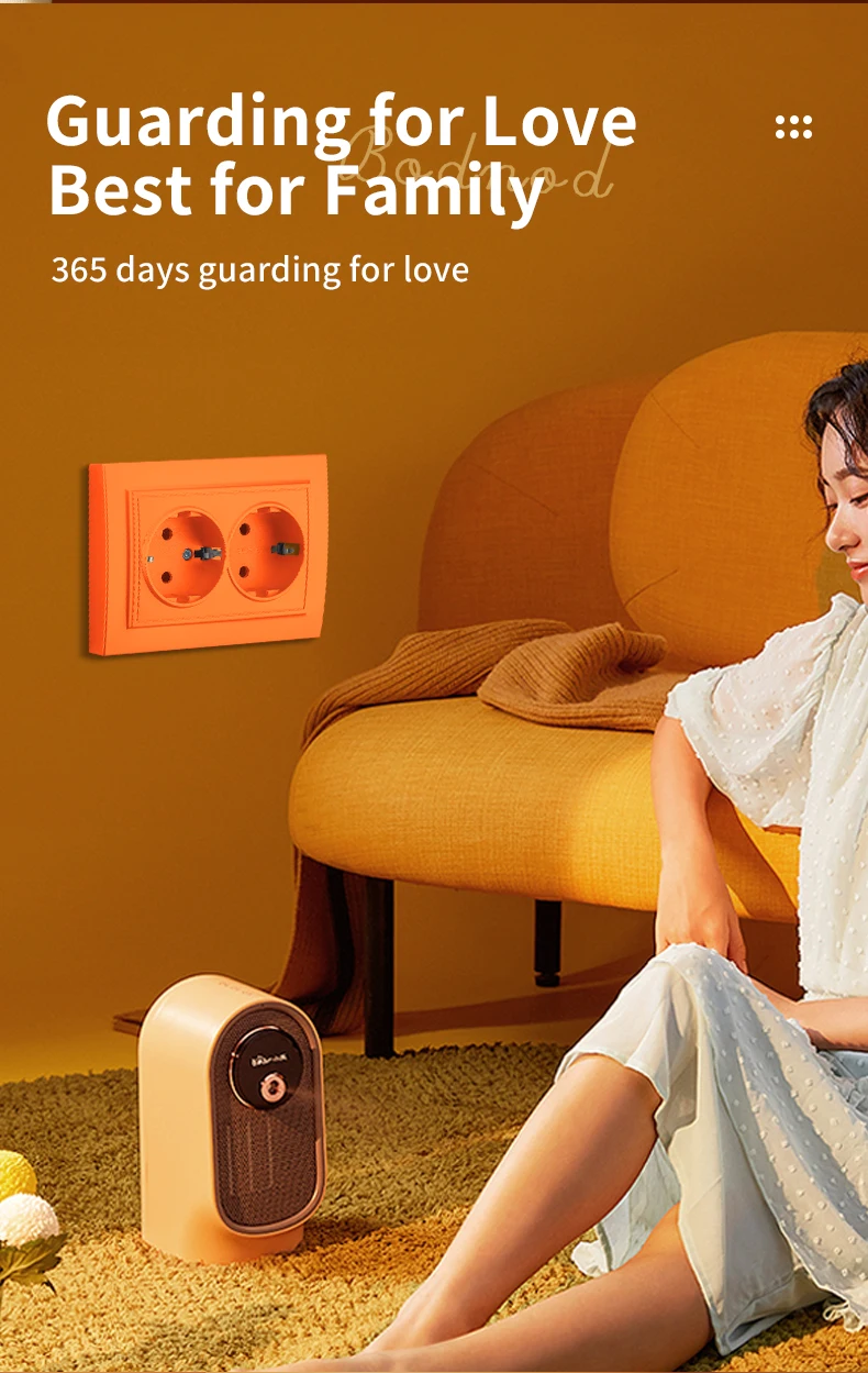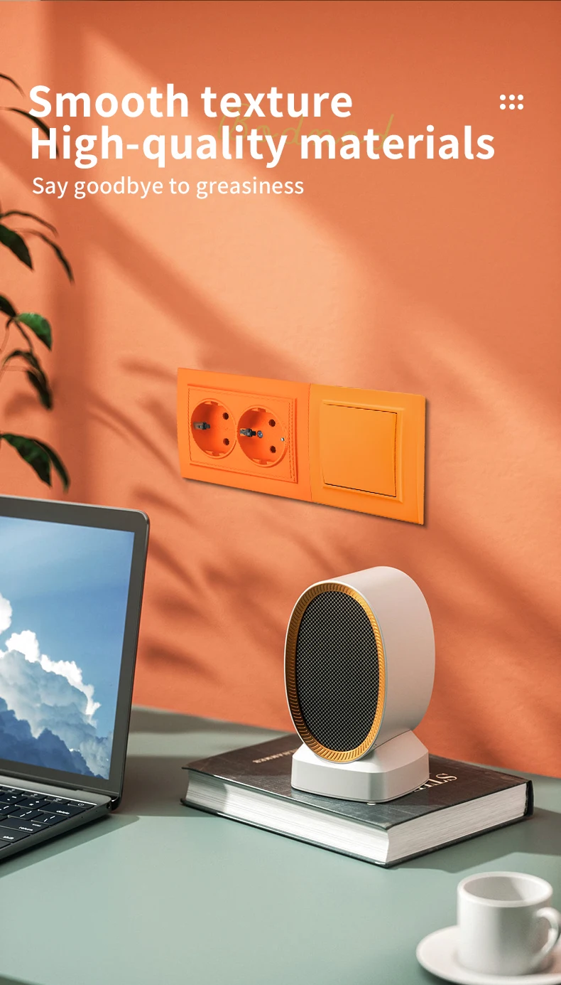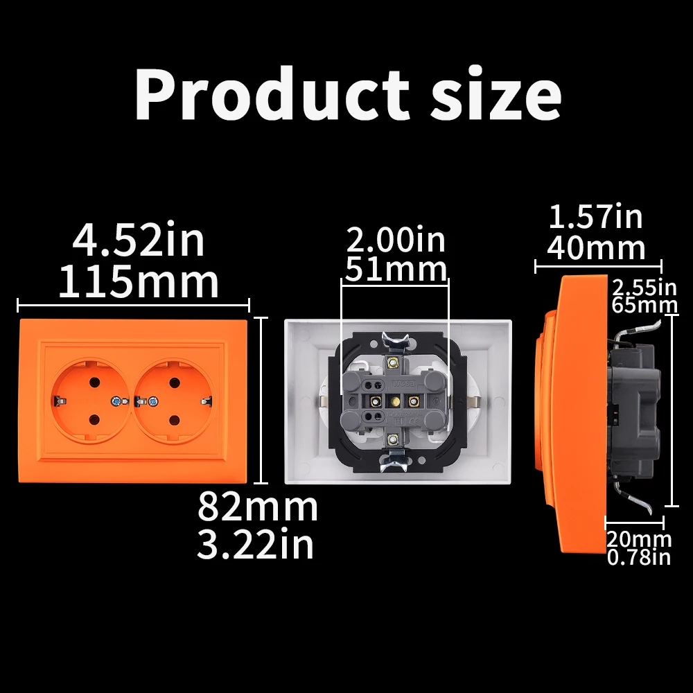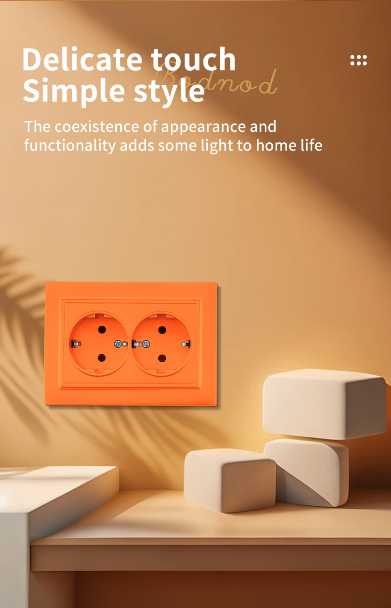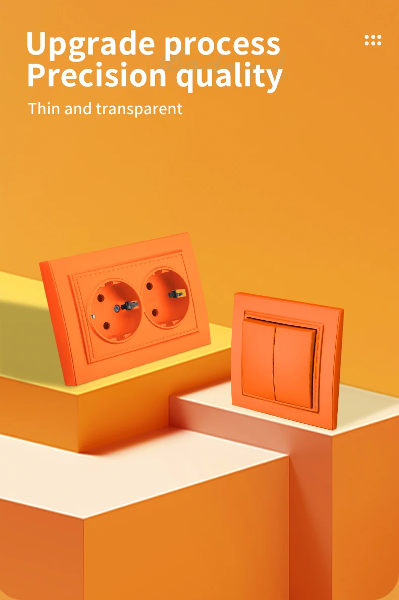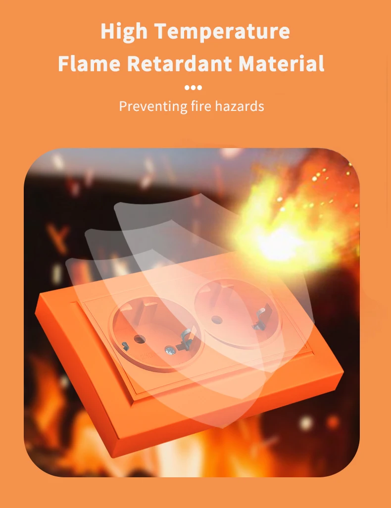 WESA สีส้มผนังฝังปลั๊กไฟ 2 ซ็อกเก็ต EU ไฟฟ้า Outlet พร้อม Ground สารหน่วงไฟสีสเปรย์ซ็อกเก็ตพลาสติก