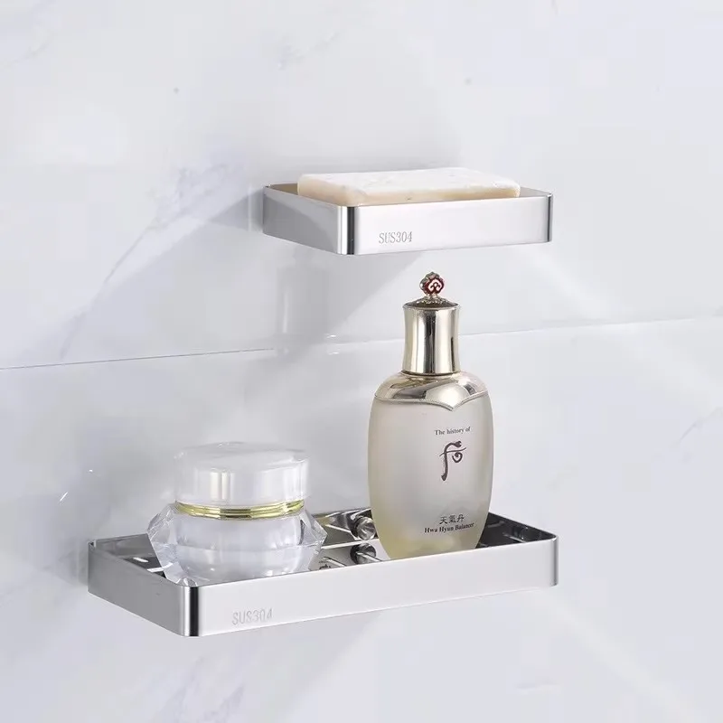 304 สแตนเลสห้องน้ําชั้นวางติดผนังผู้ถือสบู่ Shapoo Storage Organizer Rack ห้องครัวอุปกรณ์ห้องน้ํา