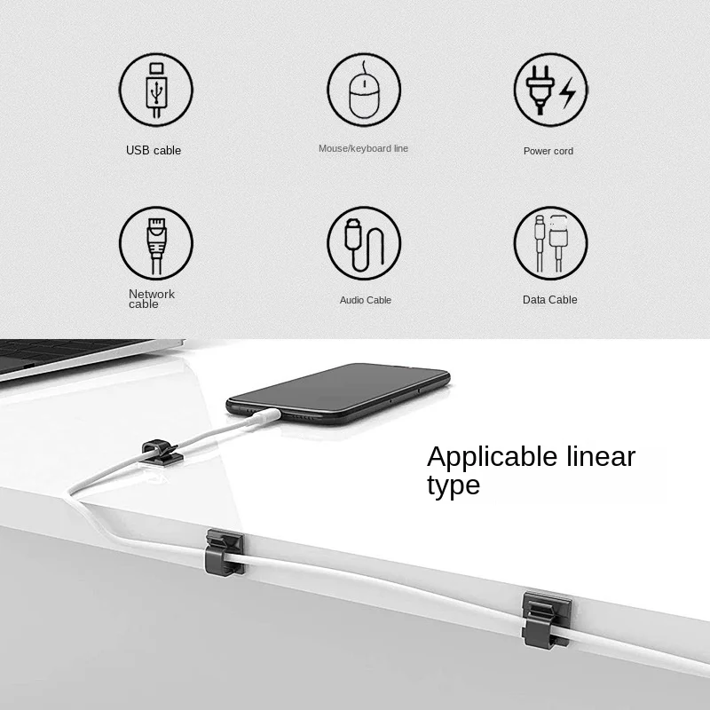 ที่เก็บสายที่ใส่ลวดติดผนังแบบไม่ทำเครื่องหมายบนรถตั้งโต๊ะสำนักงานติดคลิปสายชาร์จแบบไม่พันกันติด