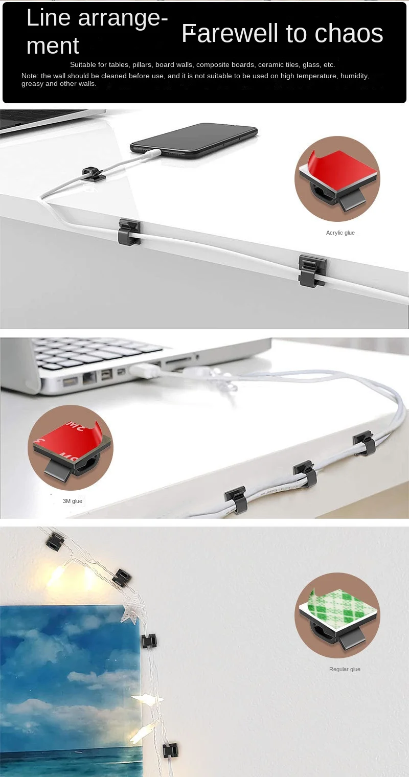 ตัวยึดสายเคเบิลแบบมีกาว ตัวจัดระเบียบสายไฟและสายเคเบิลสำหรับคอมพิวเตอร์ ตัวนำสายไฟและสายเคเบิล ตัวจัดระเบียบสายไฟและสายเคเบิลแบบยึดติด
