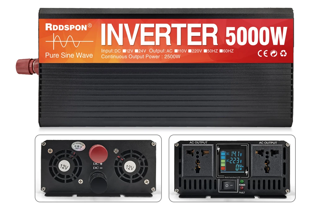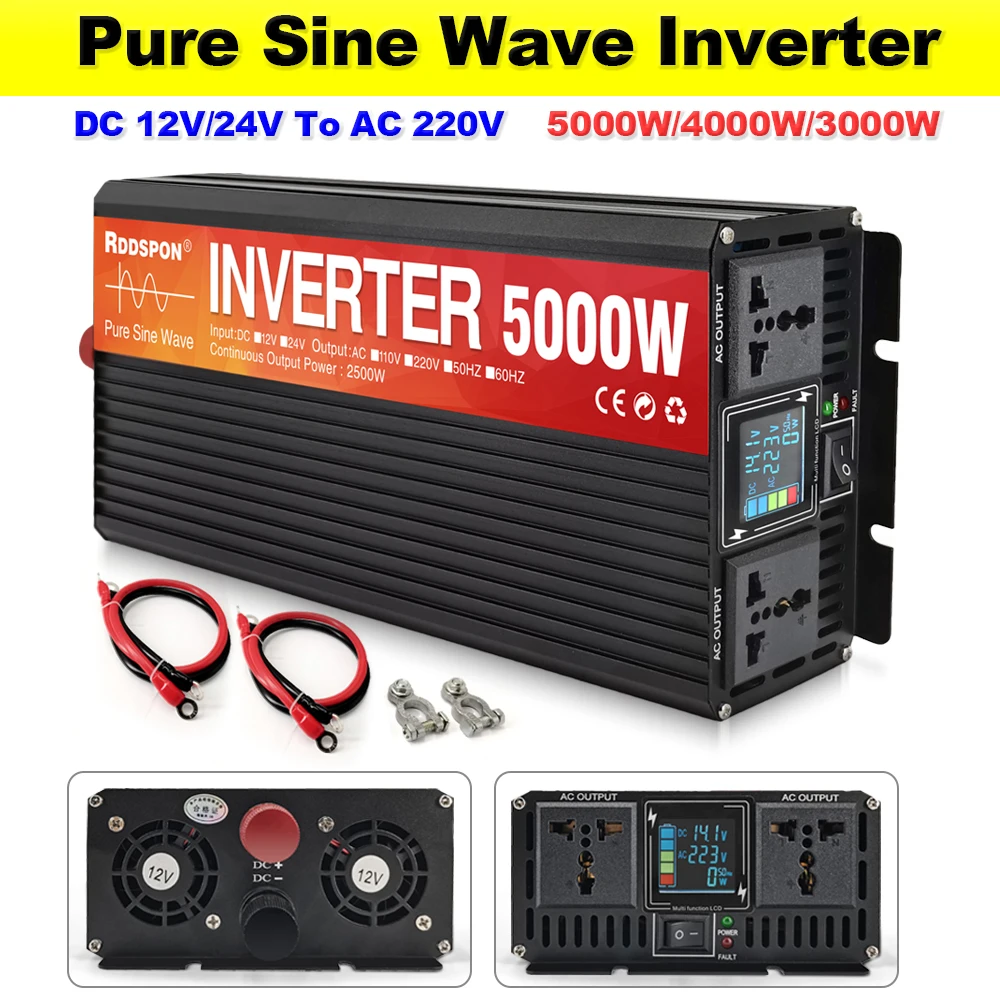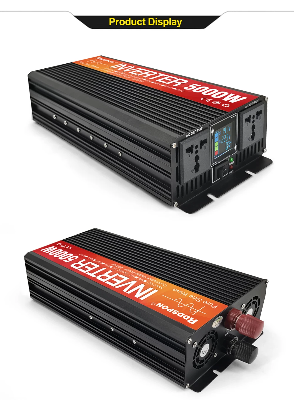 RDDSPON Pure Sine Waveอินเวอร์เตอร์ 5000W 4000W 3000Wซ็อกเก็ตคู่จอแสดงผลLCD DC 12V24V To AC 220Vแรงดันไฟฟ้าConverterรถอินเวอร์เตอร์