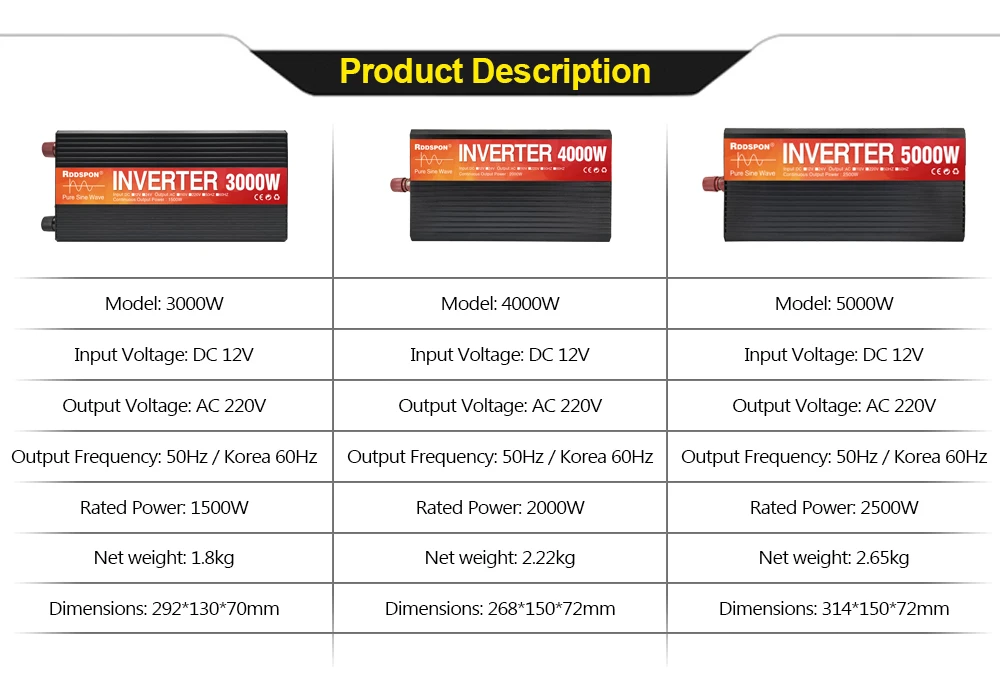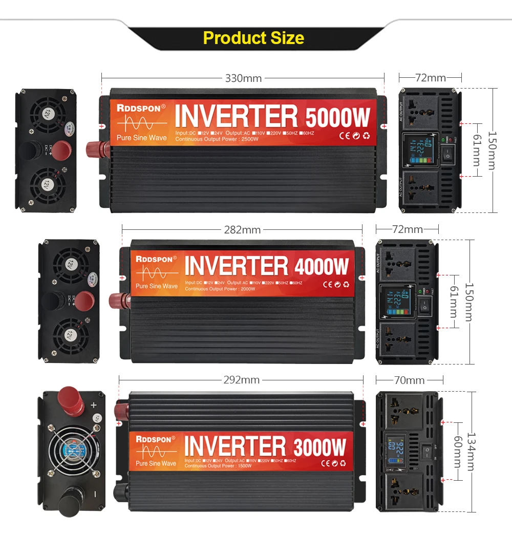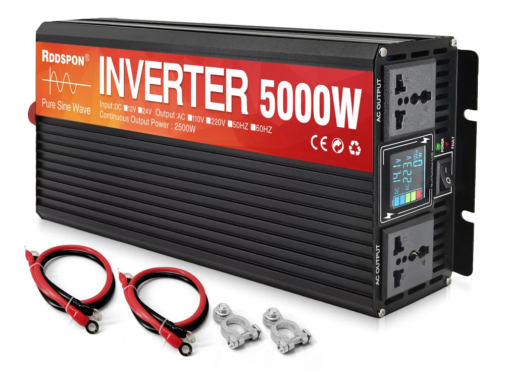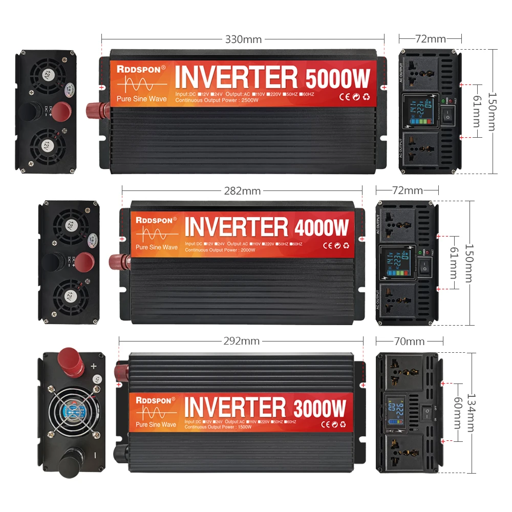 RDDSPON Pure Sine Waveอินเวอร์เตอร์ 5000W 4000W 3000Wซ็อกเก็ตคู่จอแสดงผลLCD DC 12V24V To AC 220Vแรงดันไฟฟ้าConverterรถอินเวอร์เตอร์