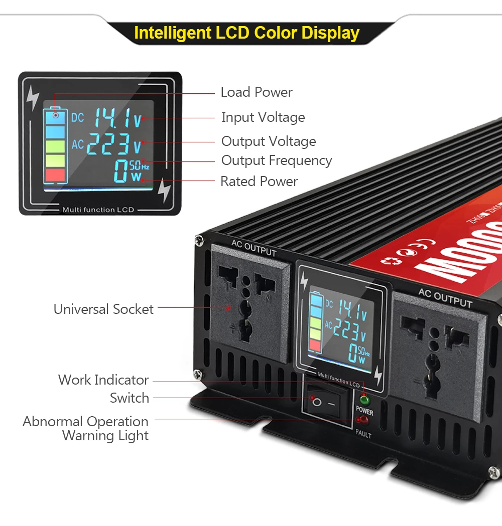 คอนเวอร์เตอร์แสดงผลสูงสุด6000วัตต์, หม้อแปลงแสดงผลแรงดันไฟฟ้า LED 12V220V/110โวลต์อินเวอร์เตอร์ USB คู่เครื่องใช้ไฟฟ้าในรถยนต์