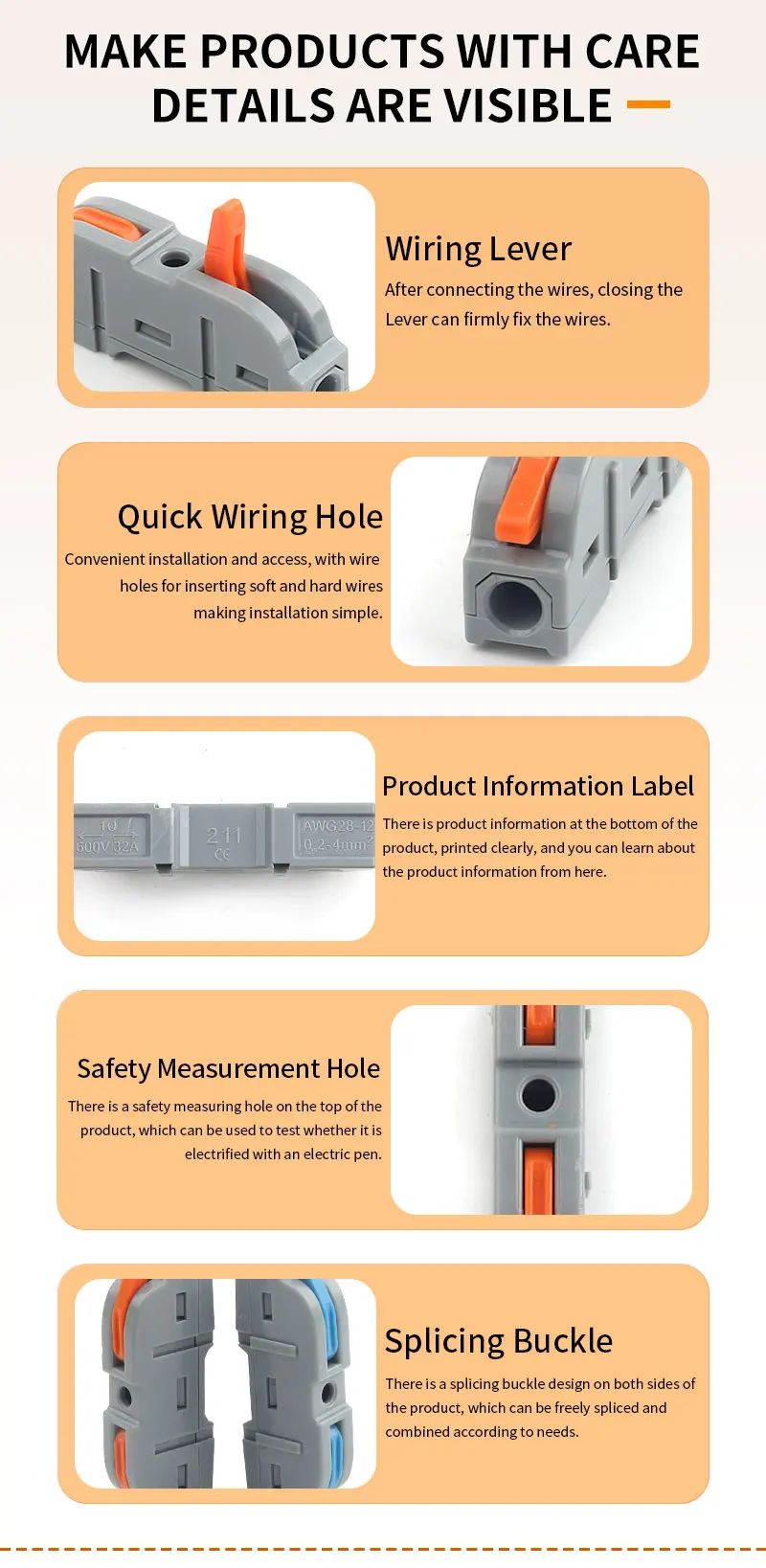 ขั้วต่อสายไฟ Push Quick Wire ขั้วต่อสายเคเบิลขั้วต่อสปริงแคลมป์สําหรับแสงสว่างและสายไฟรถยนต์ไฟฟ้า
