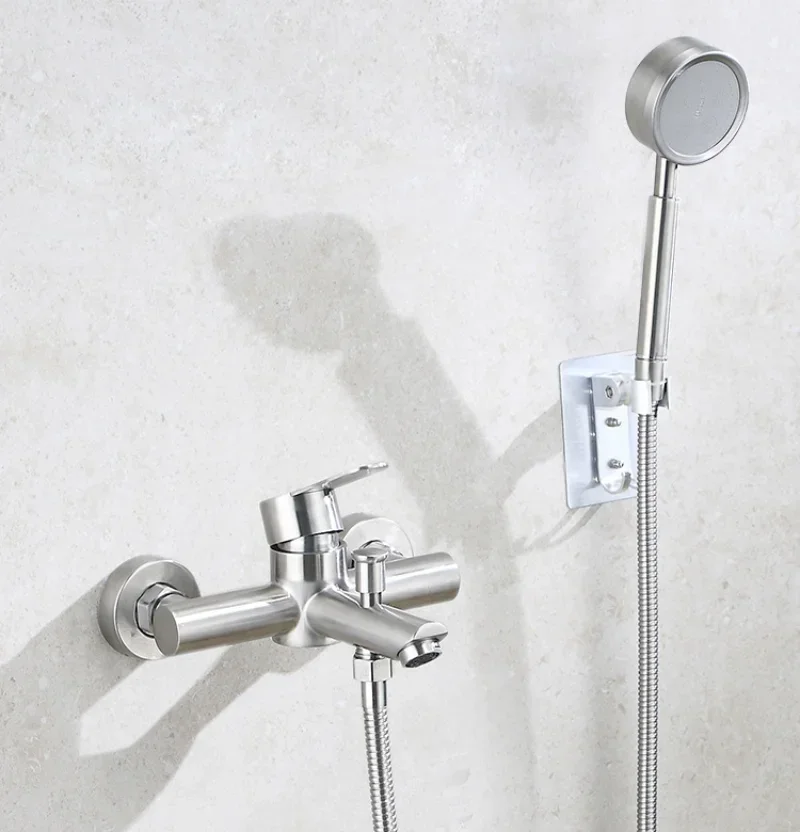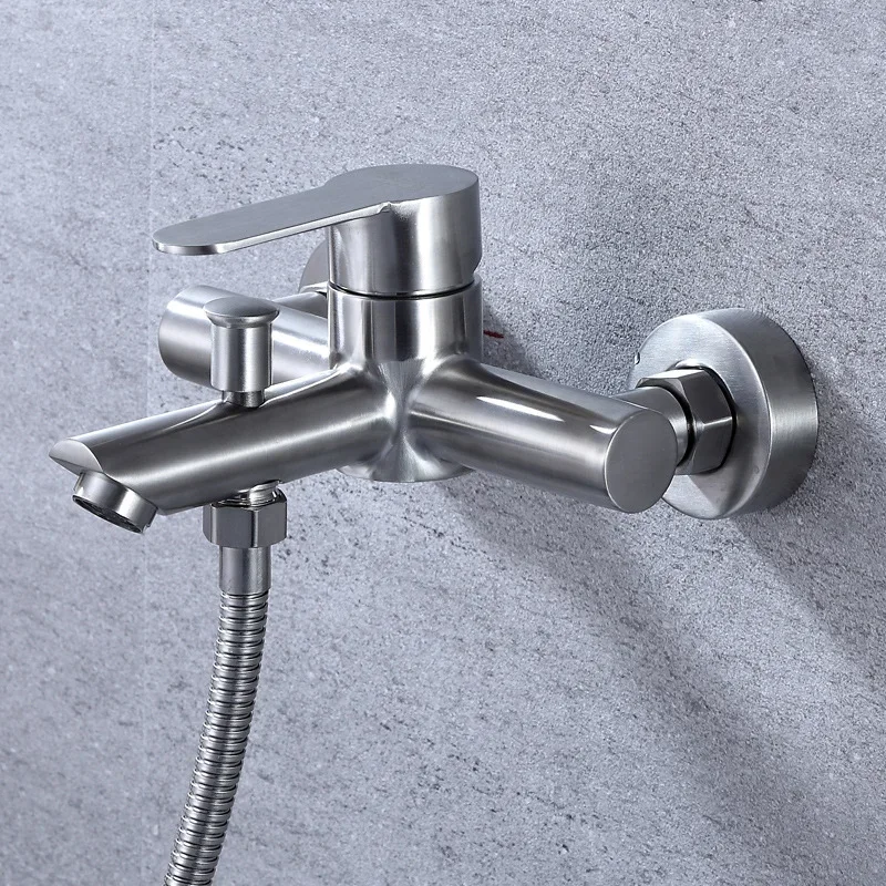 ก๊อกผสมน้ำร้อนและน้ำเย็นก๊อกน้ำอ่างอาบน้ำ 304 ก๊อกน้ำฝักบัวสแตนเลสติดผนังห้องน้ำวาล์วผสมมัลติฟังก์ชั่น