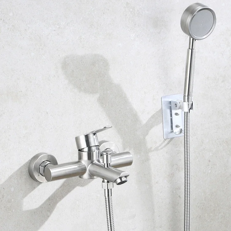 ก๊อกผสมน้ำร้อนและน้ำเย็นก๊อกน้ำอ่างอาบน้ำ 304 ก๊อกน้ำฝักบัวสแตนเลสติดผนังห้องน้ำวาล์วผสมมัลติฟังก์ชั่น